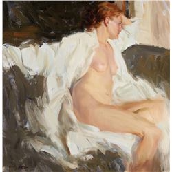 Artist: Cyrus Afsary | b. 1940 NAWA, NWR, OPA Title: Cynthia Signed l/l: Cyrus Afsary Medium: Oil on linen Dimensions: 20 by 16 inches Condition: V