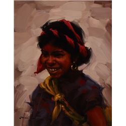 Artist: Clarence McGrath | b. 1938 Title: Guatemala Girl Signed l/l: McGrath Medium: Oil on masonite panel Dimensions: 24 by 18 inches Condition: V