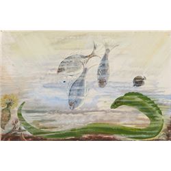 Artist: Dorothy Eugenie Brett | 1883-1976 Title: Fish Signed l/r: DE Brett 1950 Medium: Gouache on paper Dimensions: 7 by 11 inches Condition: Ver