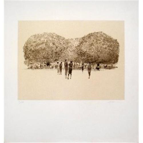 Signed in pencil and numbered #I/XX, this is a very representational piece by Altman of a daily park scene in Paris. The lithograph measures 22 x 21 inches.