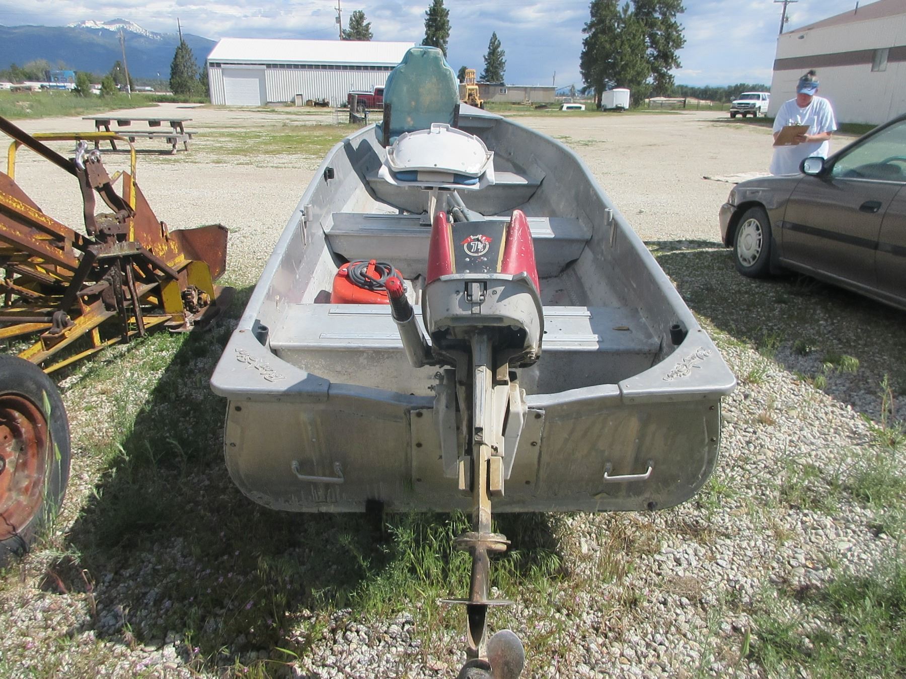 Aluminum Blue Star Boat And Trailer- 7.5 HP Elgin Motor With Compression- Seats- Gas Tank- Oars- 13'8"L X 50"W- Decent Condition- Clear Title On Boat And Trailer