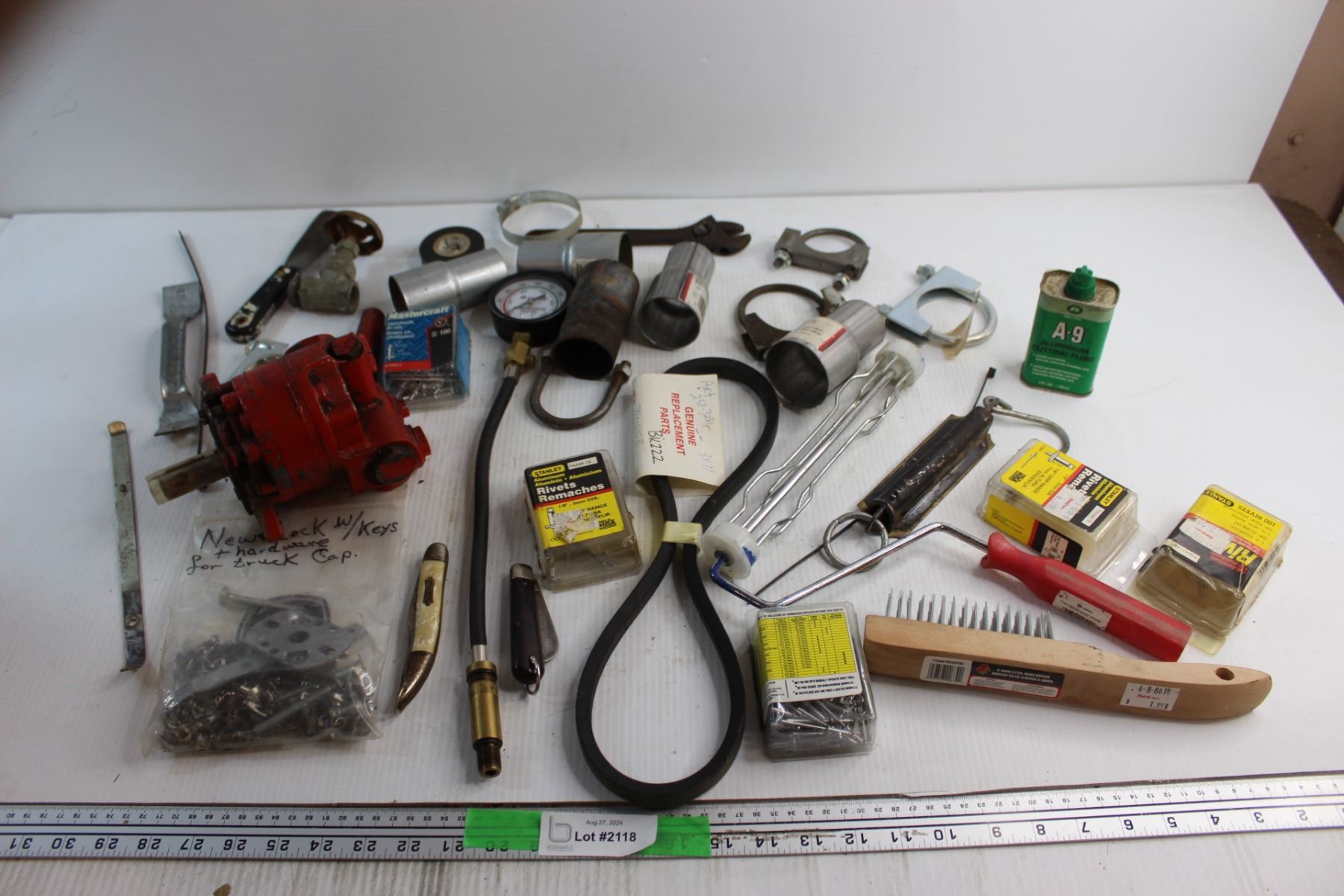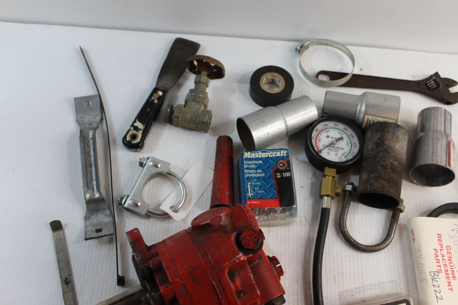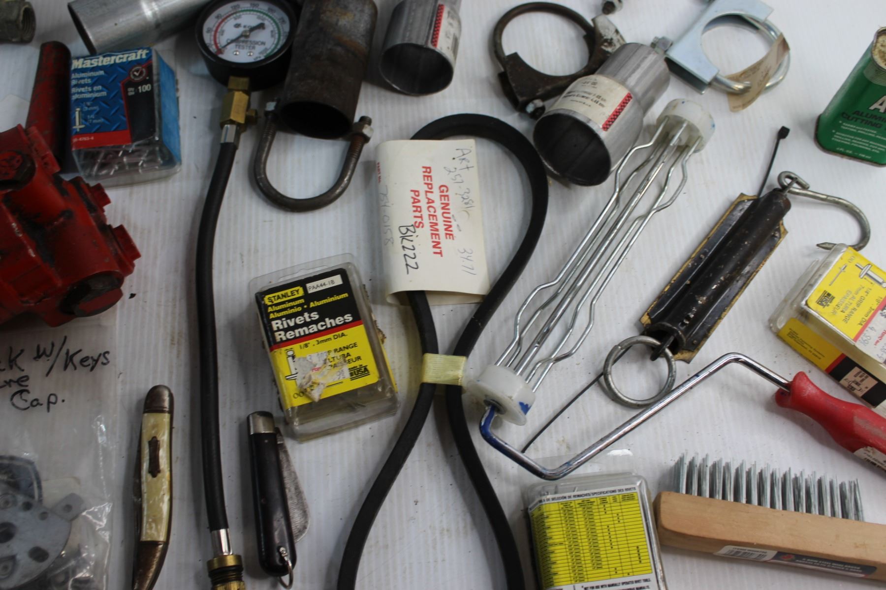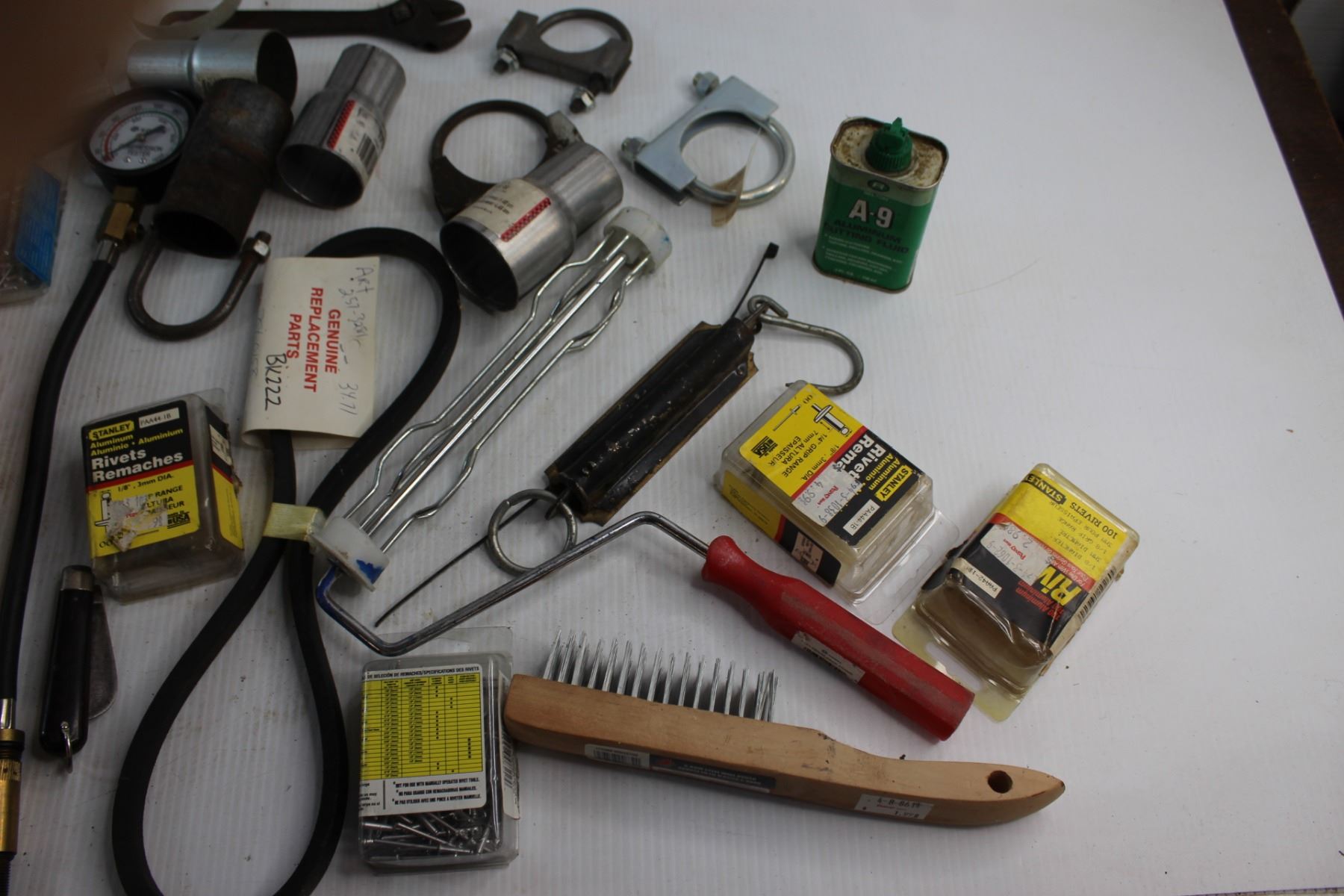 Aluminum Cutting Fluid, Metal Brush, Compression Tester and Assorted Items