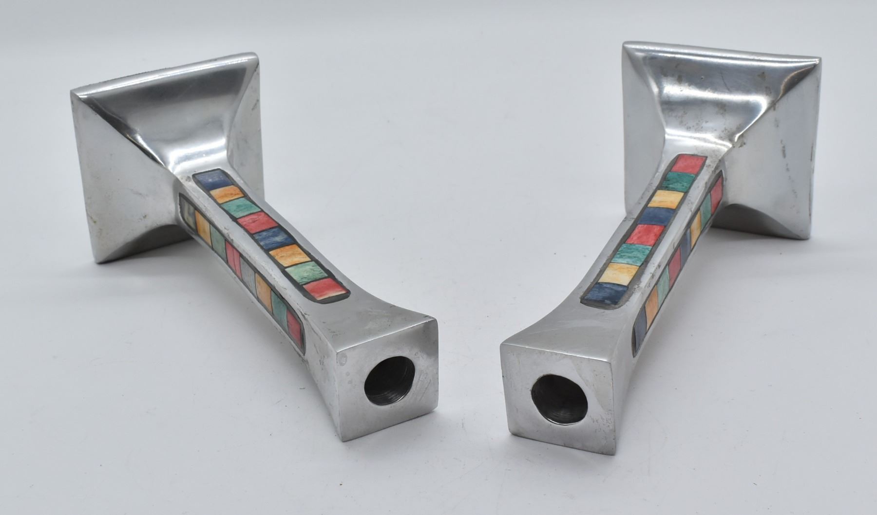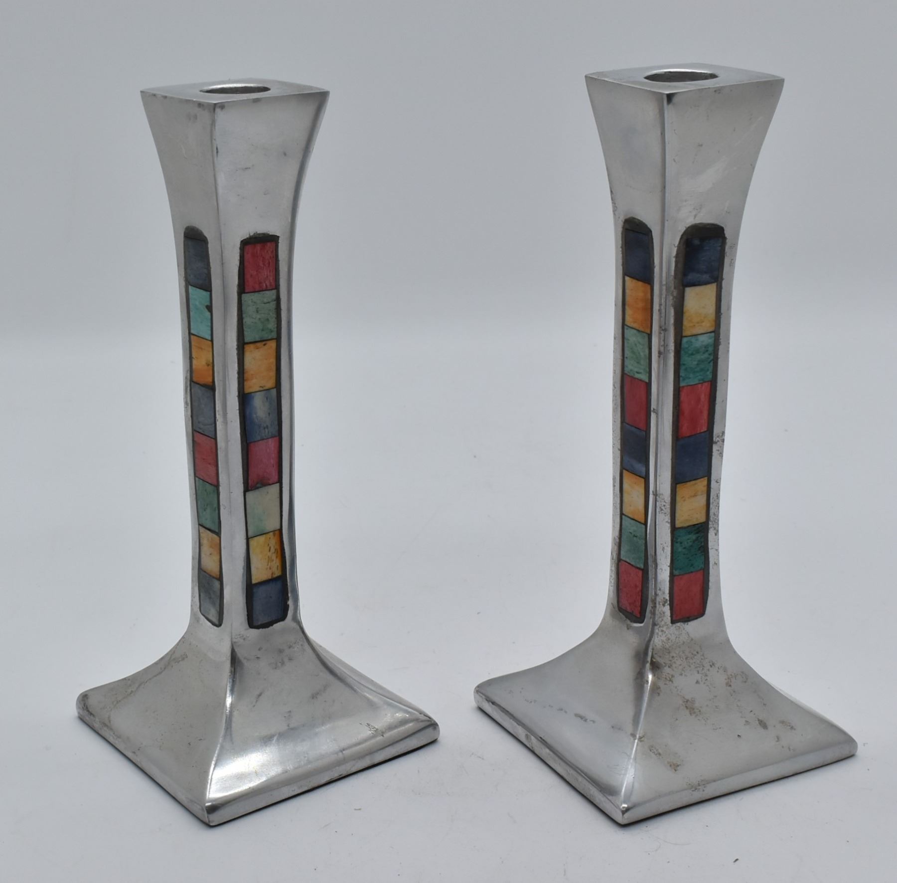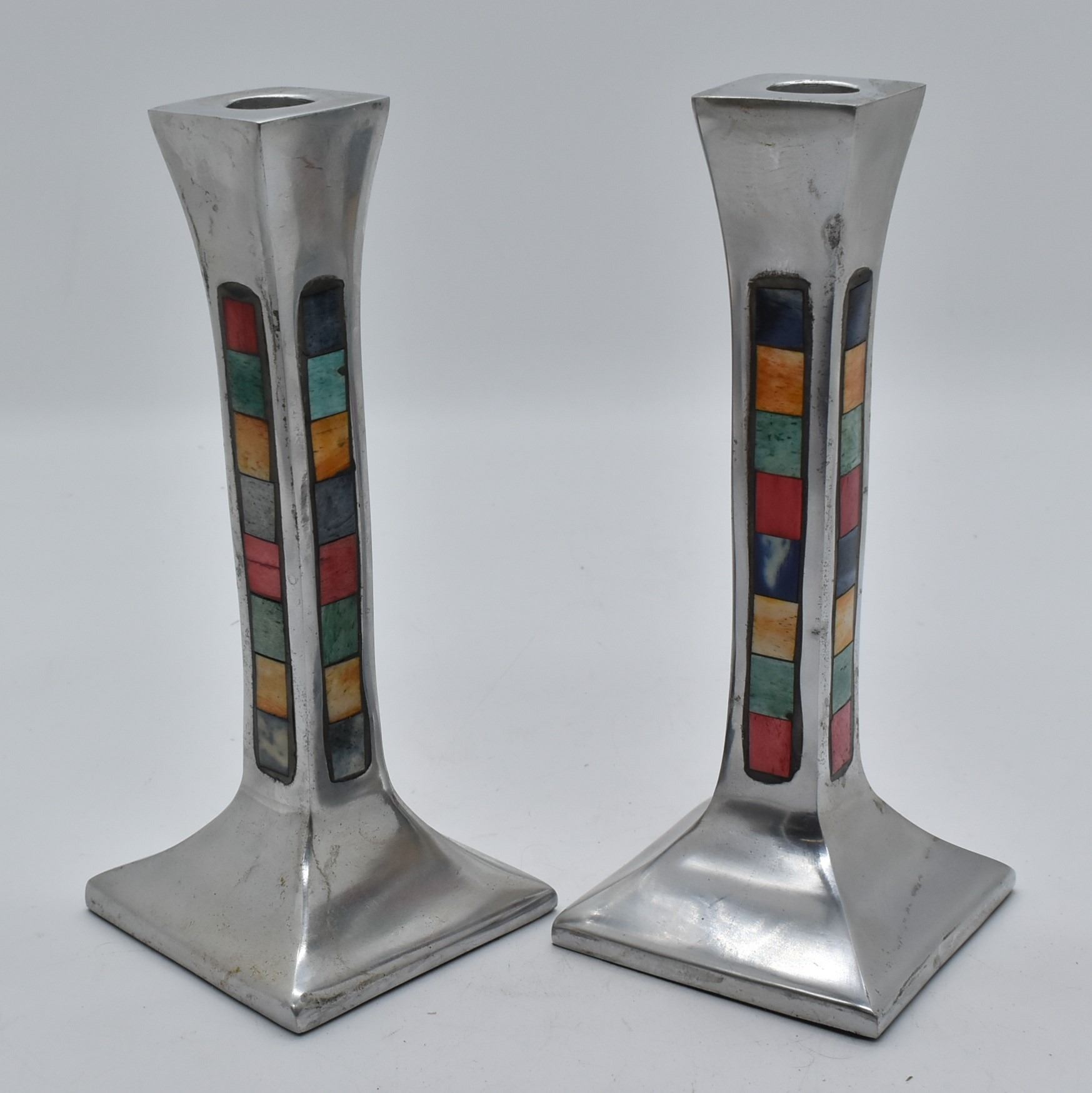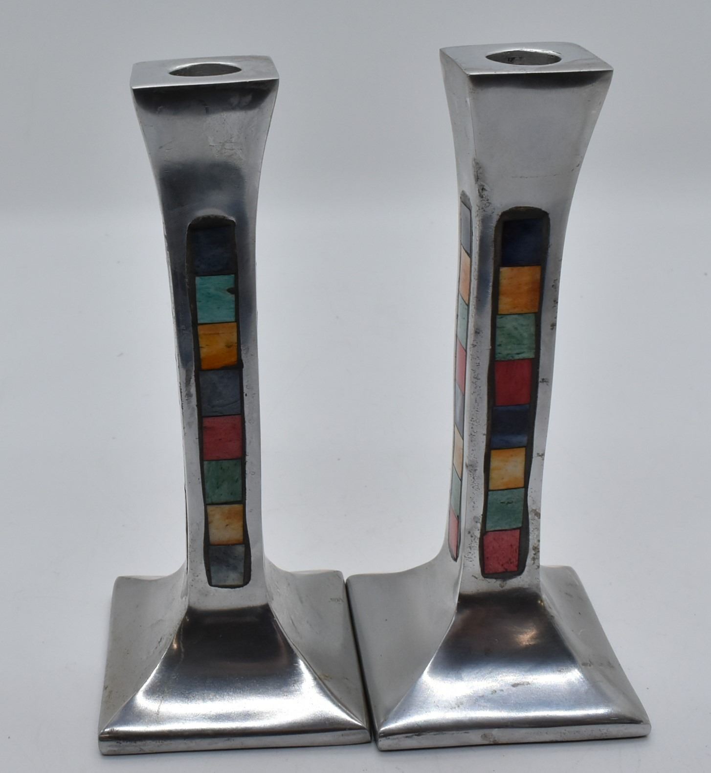 Aluminum Multi-Colored Inlay Candleholders, measure 3.5'' x 8''L
