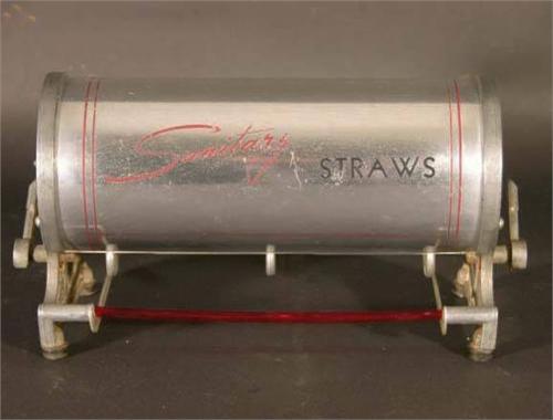 Aluminum sanitary straw dispenser, Rex Manufacturing, Dallas, TX. ex. cond.