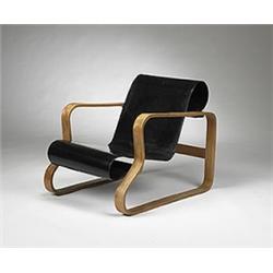 Alvar Aalto an early Paimio Sanatorium lounge chair, model 41 Artek Finland, c. 1932 lacquered birch plywood, beech frame 23.5"w x 32.5"d x 26"h The highly curved seat of the Paimio lounge offers a great amount of comfort in use. The Paimio lounge chair is a masterpiece of Aalto's chair designs and has come to represent the quintessential modern Scandinavian chair. Literature: Alvar Aalto Designer, Alvar Aalto Museum, pg. 165.