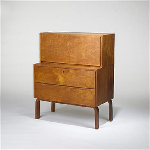 Alvar Aalto drop front desk Artek Finland, c. 1950 birch, birch plywood 33.25"w x 18.5"d x 41.5"h Purchased at Baldwin Kingrey in Chicago.
