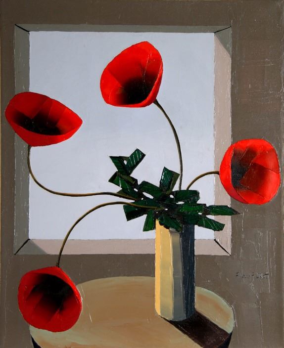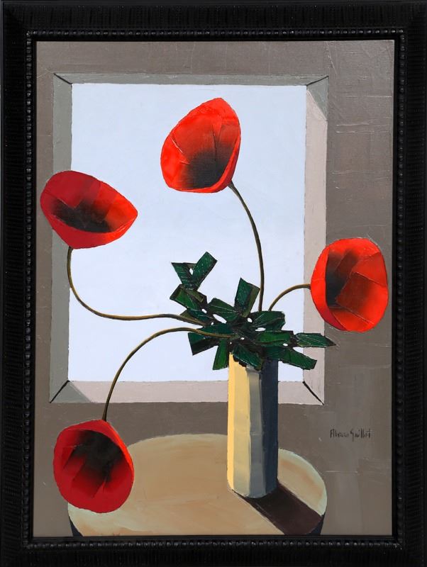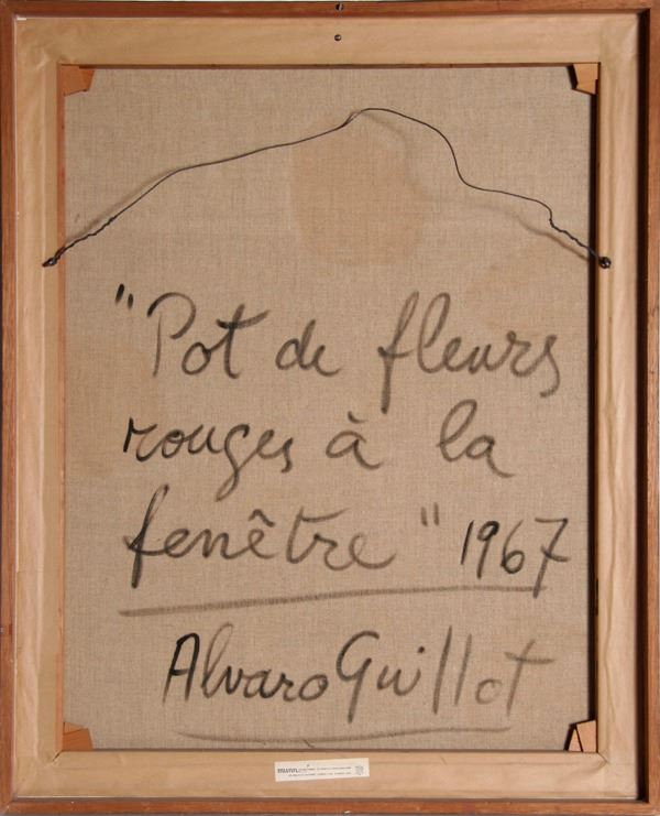 Alvaro Guillot, Pot de Fleurs Rouges a la Fenetre, Oil Painting