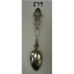 Alvin sterling silver teaspoon. "Holly Leaves" pattern. 5.5" long. Condition: Minor scratching on bowl, but very good quality on decorated handle.