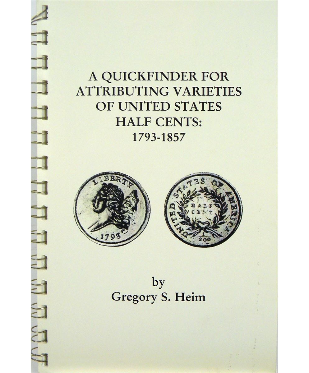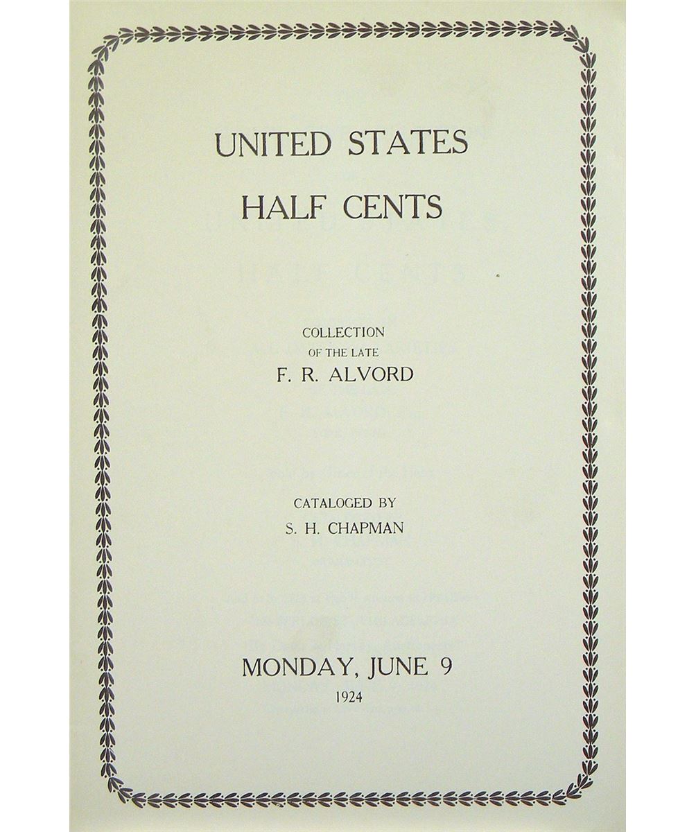 Chapman, S.H. THE SUPERLATIVE COLLECTION OF UNITED STATES HALF CENTS, COMPLETE IN ALL DATES AND VARIETIES, OF THE LATE F.R. ALVORD.... Reprint of the June 9, 1924 sale. 8vo, printed paper covers. 28 pages, with halftone plates and prices realized. Fine. [with] Heim, Gregory S. A QUICKFINDER FOR ATTRIBUTING VARIETIES OF UNITED STATES HALF CENTS: 1793-1857. North Brunswick, 1997. 8vo, original pictorial card covers, spiral-bound. 68 page; illustrated. Signed and numbered by the author. Fine. The Alvord reprint is useful for the inclusion of the rare plates.