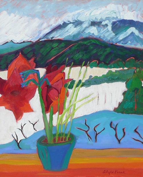 Alyce Frank (1932-) Oil on Canvas "Amaryllis Out Window" Signed lower right 30" x 24"
