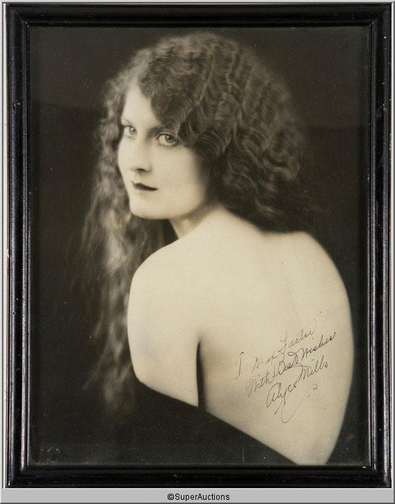 Alyce Mills from The Max Factor Collection / (1) Photograph with Original Autograph on the Photo / "To Max Factor With Best Wishes Alyce Mills" / Alyce Mills was Paramount Studios Leading Lady in the Silent Era / This Pictures Once Hung in the Max Factor Studio / {10 3/4" L x 13 3/4" W in Frame}