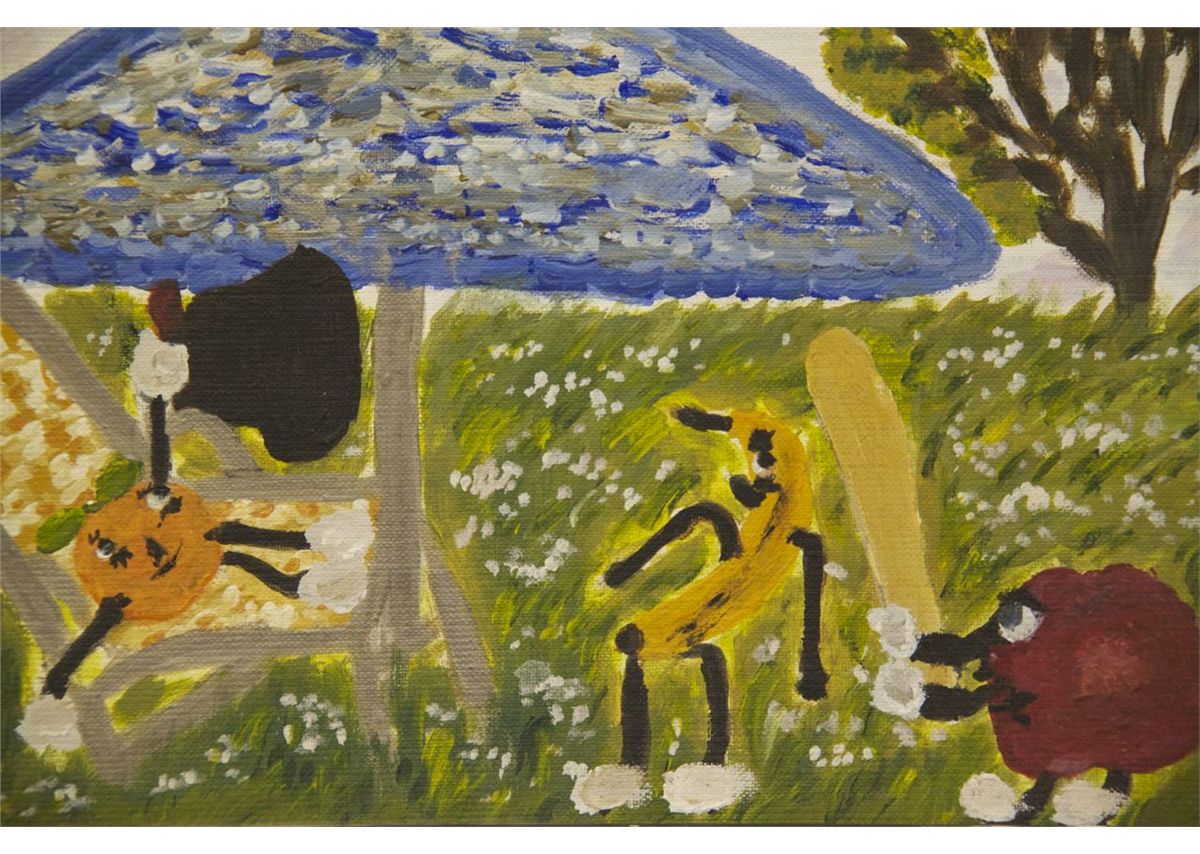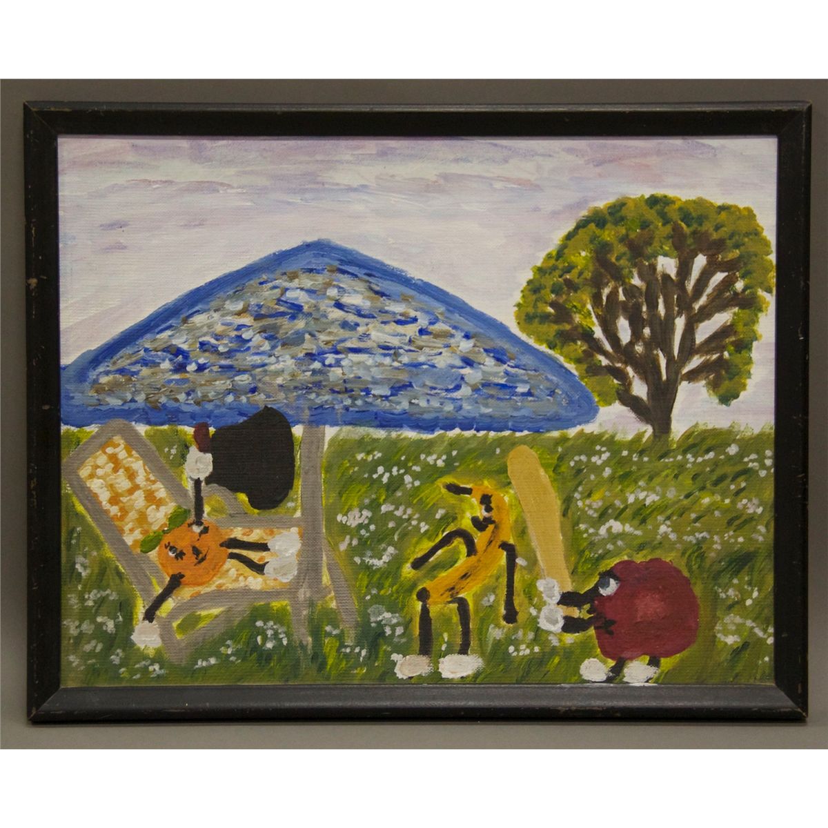 Alyne Harris (1943), Fruits Relaxing.. Oil painting. [< 5 (lbs), 20 (in), 24 (in)]