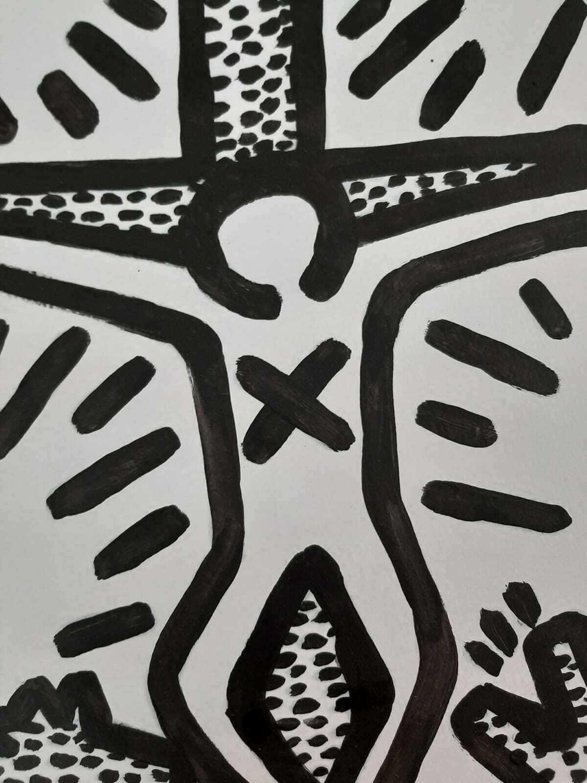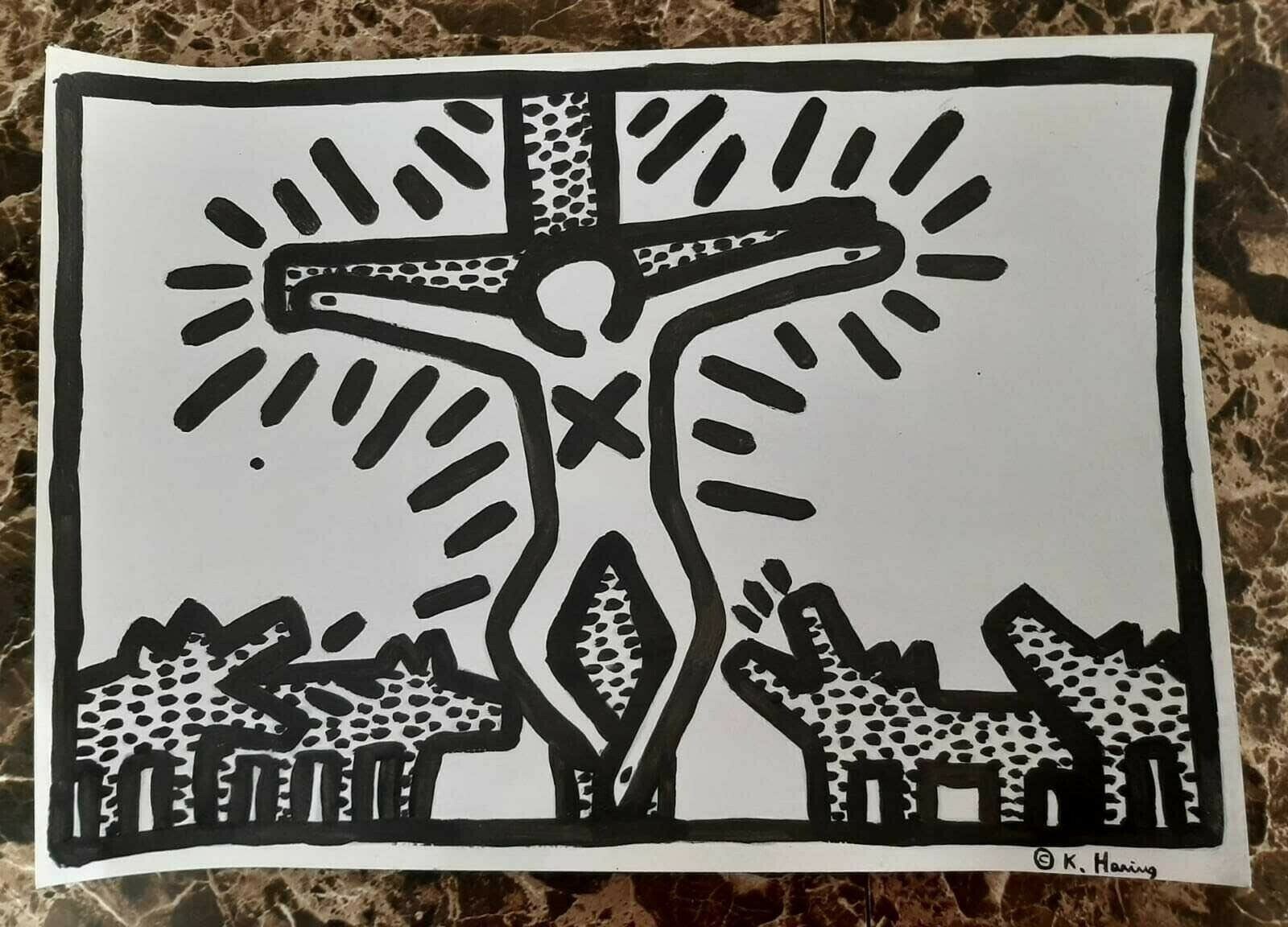 Keith Haring ( 1958 - 1990) - Antique Oil painting on Cardboard - Stamp