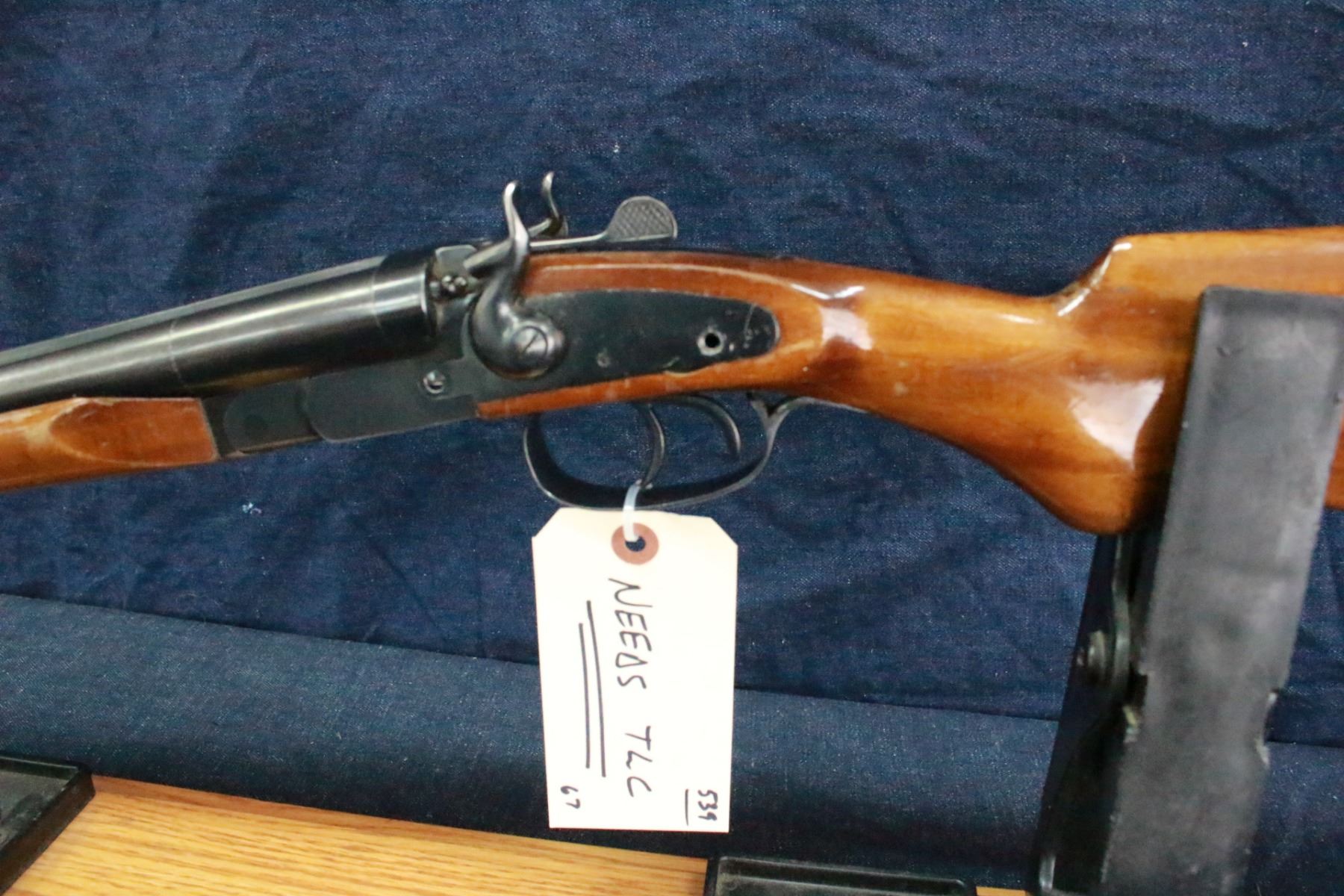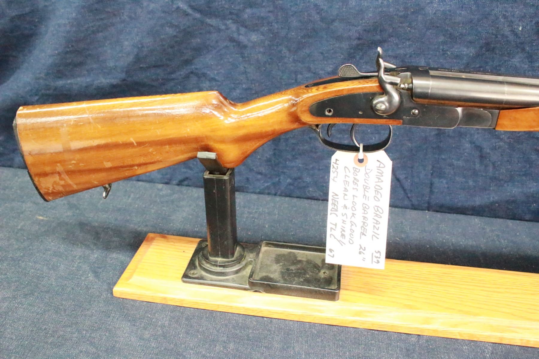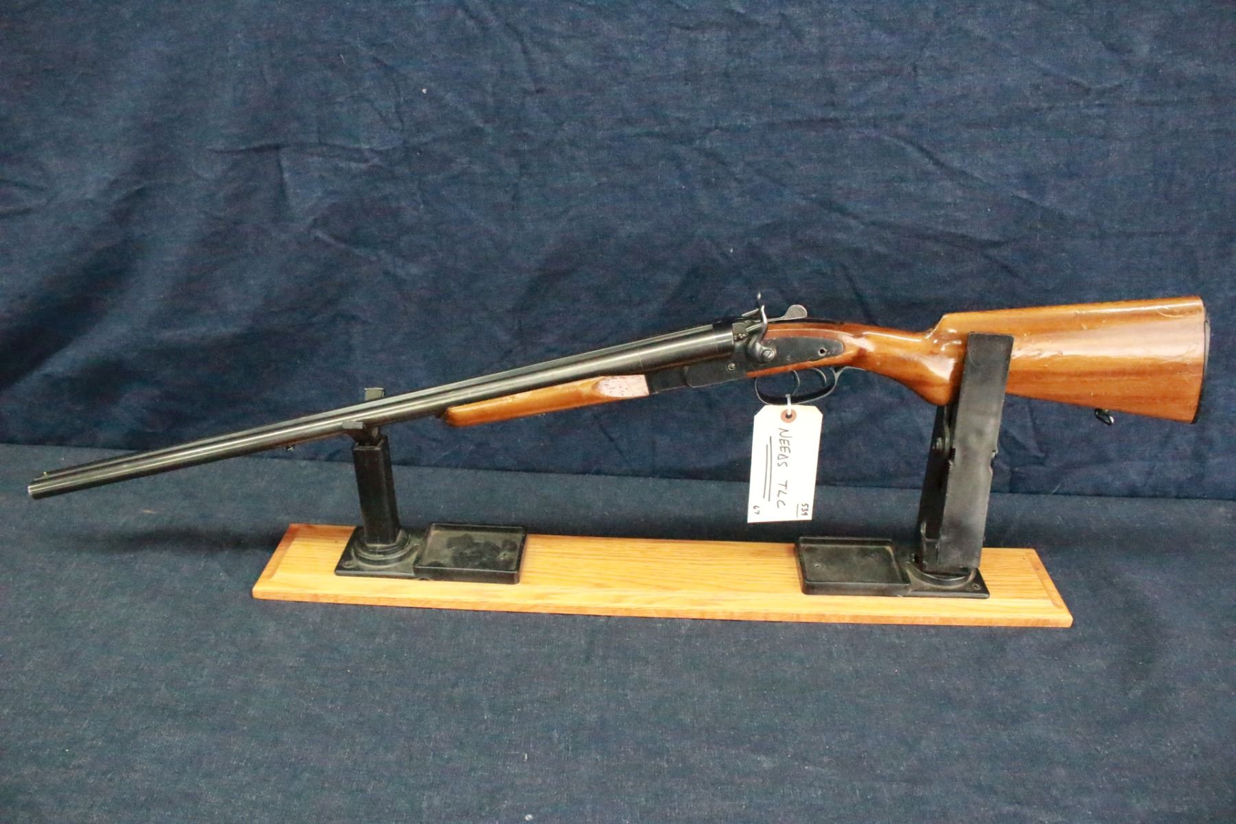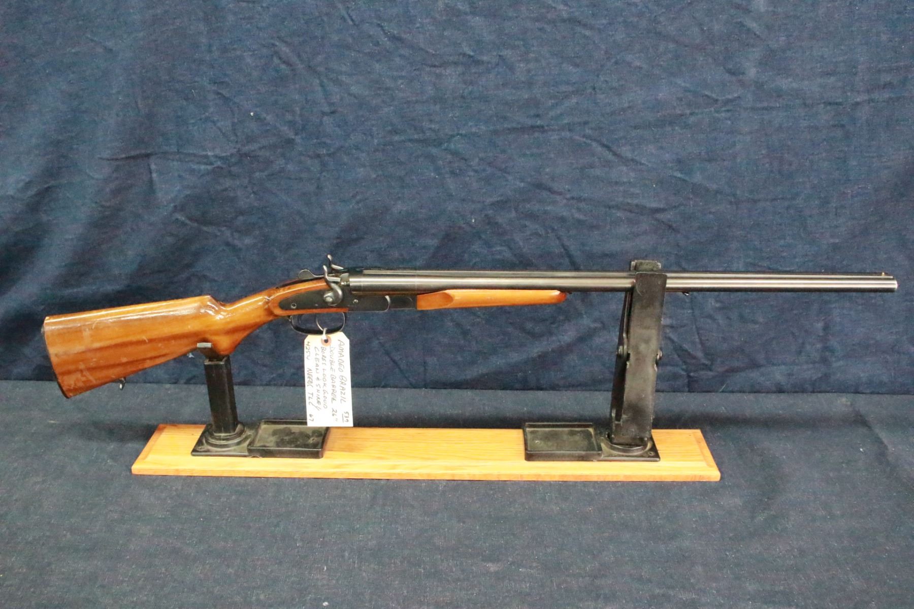 20 ga.; 3"; Double Barrels; with Sling Swivels; the Right Bore Choke is Marked C1, the Left is Marked M; Bores look Good, Clean & Shiny; Needs TLC; The Left Hammer does not Cock; Possibly should be taken to a Gunsmith for servicing; S/N 4254 - Has a slight bulge