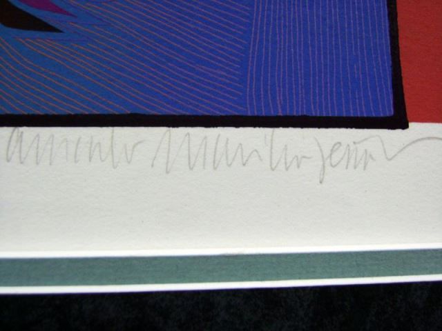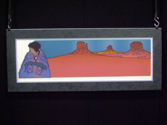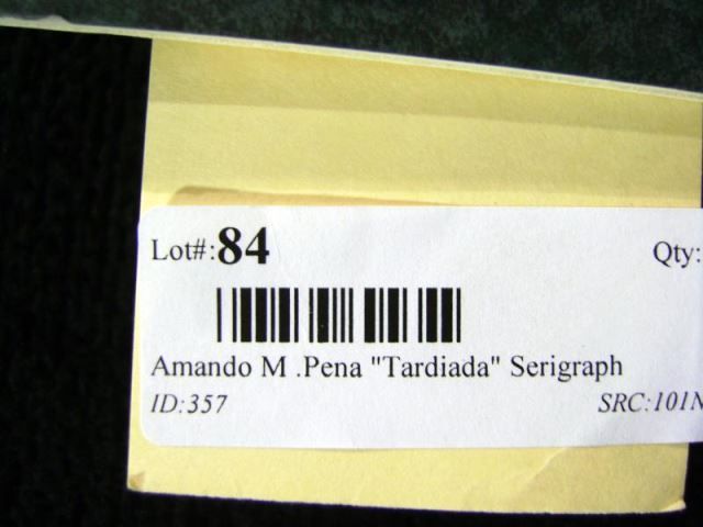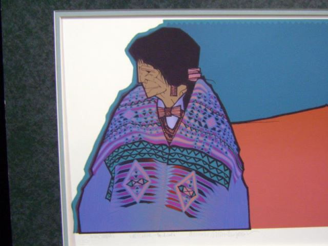 Amado Pena Serigraph Entitled Tardiada- Picture of a Figure in Lavender Blanket & Red Landscape to R