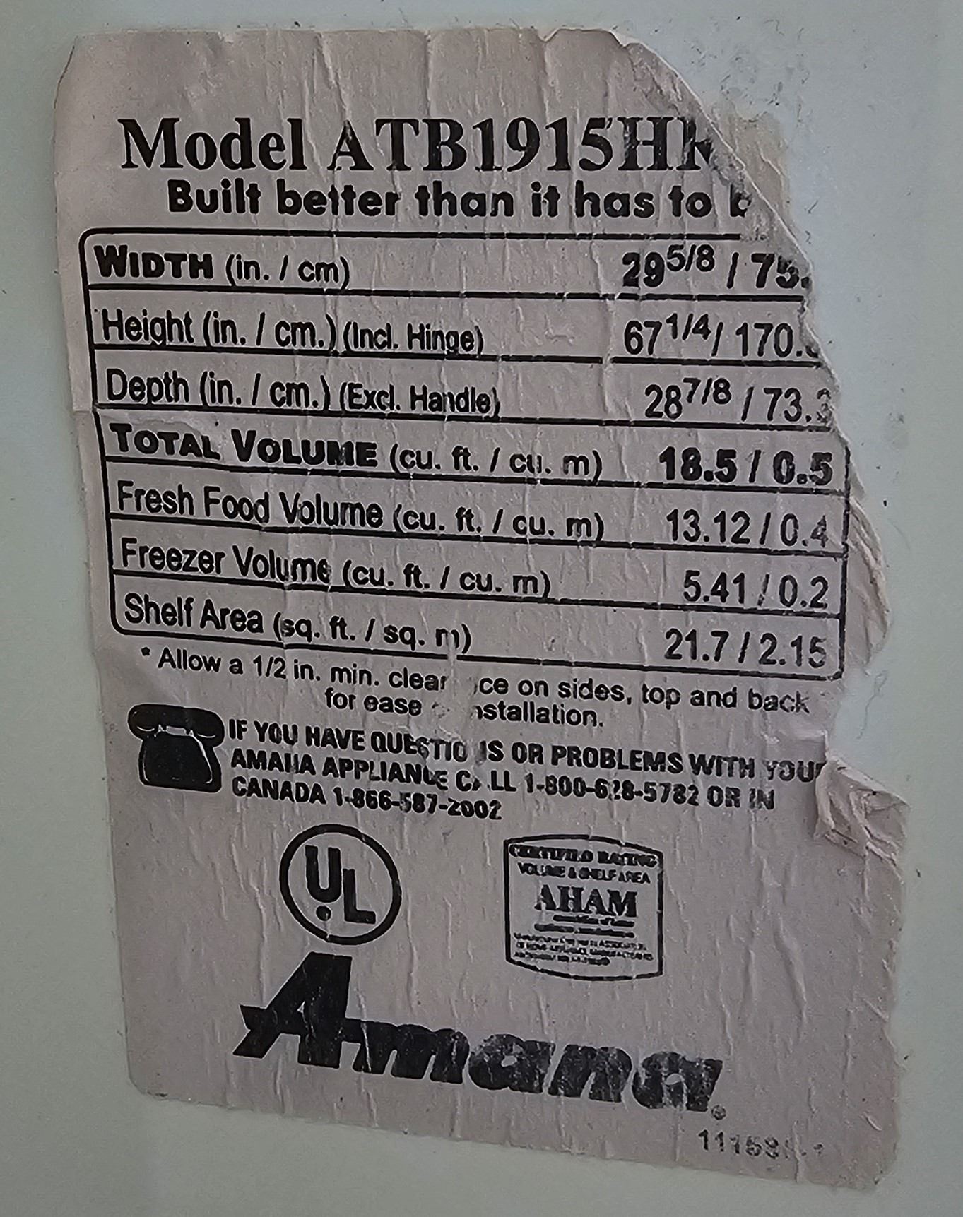 Amana Fridge/Freezer - Untested