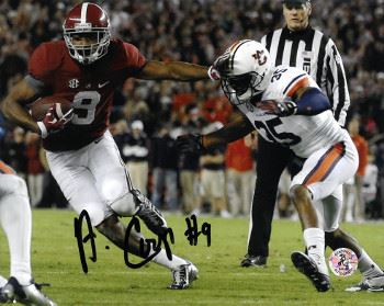 Amari Cooper played college football at Alabama. He was the Biletnikoff Award winner as the nation's top receiver and a unanimous All-American in 2014. Considered one of the top wide receiver prospects of the 2015 NFL Draft, he was selected 4th overall by the Raiders. Amari Cooper signed Alabama Crimson Tide 8x10 Photo. Bama Authentics Hologram and Certificate of Authenticity from Athlon Sports Collectibles.