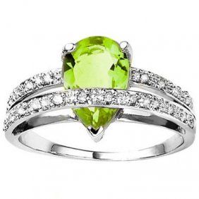 This beautiful ring features Pear 7x10 Peridot and was set in the 2.45g 10K gold and the 18pcs of the diamond add to the spectacular of the ring.