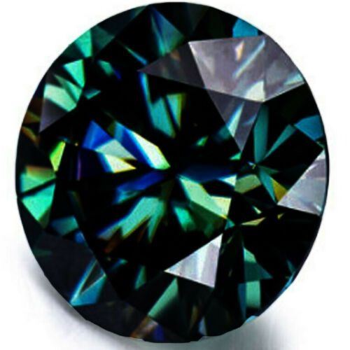 Amazing Huge 6.5 Ct VVs1 Rare Dark Green Blue Fire Moissanite. This incredible gem is a VVs1 eye clean brilliant round cut measuring 12.25 mm. It displays brilliant multi -color flashes. With a refractive index of 2.65-2.69, this Fire Moissanite exhibits more fire and brilliance than a natural diamond. Also, with a 9.25 rating on the mohs hardness scale , it will test positive for a diamond on almost every diamond tester. Simply gorgeous and ready to mount.