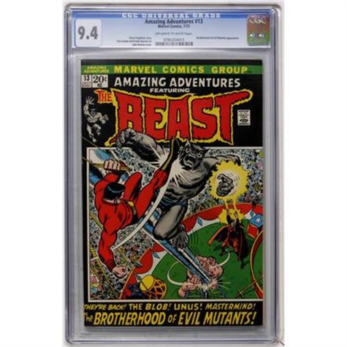 <B>Amazing Adventures #13 (Marvel, 1972) CGC NM 9.4 Off-white to white pages.</B></I> Brotherhood of Evil Mutants appearance. John Romita cover. Overstreet 2007 NM- 9.2 value = $75. CGC census 9/07: 8 in 9.4, 3 higher. <I> From the Fantastic Frank Collection.</B></I><BR><BR><b>Shipping:</b> Comics - Unslabbed (<a target="_blank" href="http://www.heritageauctions.com/common/shipping.php">view shipping information</a>)