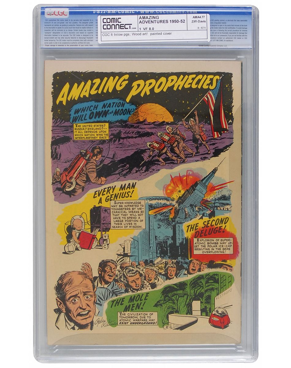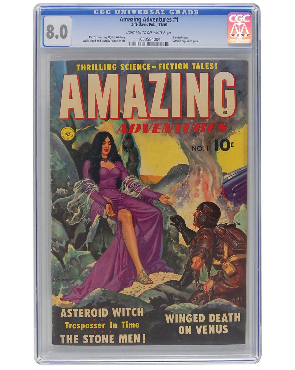 Amazing Adventures #1 (Ziff-Davis, 1950) CGC VF 8.0 Light tan to off-white pages. Painted cover featuring the Asteroid Witch. Art by Wally Wood, Alex Schomburg, Murphy Anderson, and Ogden Whitney.