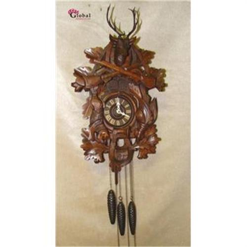 ABSOLUTELY FANTASTIC! Take a moment and get a look at one of the most fabulous cuckoo clocks we have had the pleasure to offer for auction in some time!! We were lucky to acquire it from a high end private estate in the South of Germany near Triberg,in the heart of the Black Forest !This fantastic cuckoo clock of only 19 Inches tall is made of the finest birch wood and has a gorgeous patina.This black forest cuckoo clock dates from the second quarter of the 20th C. (c. 1945).The dimensions are: Height: 19 Inches(without weights and pendulum),Width: 12 Inches and Depth: 9 Inches.This is a very nice cuckoo clock for the collector or someone wanting an unusual cuckoo that no one else has!!Every half and full hour the clock chimes on a gong while a cuckoo coming out the little door.Every half and full hour the clock plays a melody while a musician coming out the other little door.This fantastic cuckoo clock has a 30 hours movement,driving by three cast iron pinecones, and is in fine working order.The clock is carved with leaves,a rabbit,a pheasant, a hunting horn,a hunting bag and on the top a deer head with antlers.The moment you hear that distinctive call as the cuckoo pops out of the little door in the carved wood, you will be transported back to a time of great clock making in the Black Forest.Regarding shipping we will pack the clock in a wooden box so you will receive it without any damage. SHIPPING COSTS ARE FREE !!! After payment you will receive the clock in about 5 days. ...