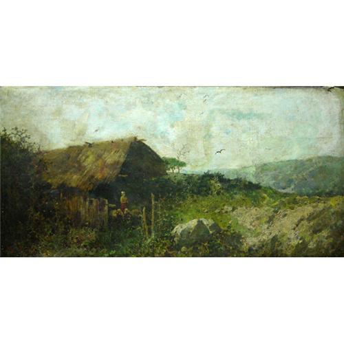 This is a very rare painting with a quality that you'll never find in any other place but the Bureau Art Gallery. It is from the Italian School made by a veru skilled master of the 19th Century showing the sight of a house in a peacefull field with a lady inside. The Bureau Art Gallery (20 years in business) and our experts can assure you the quality of the painting!