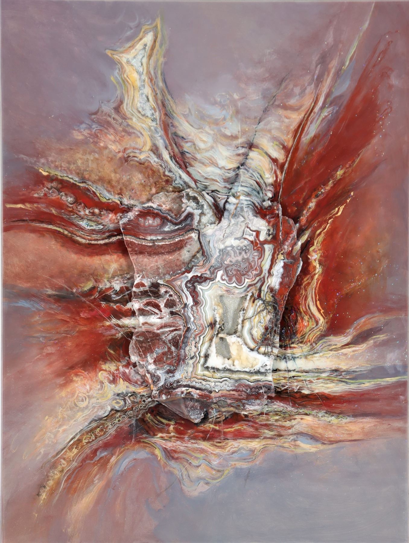 Agate stone creation featuring luscious red, gold, and white bandings of agate fortifications.
