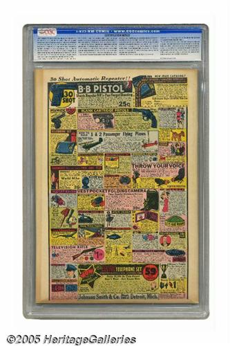 50. Auctioneer offers no opinion as to the validity of a grade assigned by any third-party grading service. Since we cannot examine C.G.A. encapsulated notes or Comics Guaranty Corporation (CGC) encapsulated comics, they are sold "as is" without our grading opinion, and may not be returned for any reason. Auctioneer shall not be liable for any patent or latent defect or controversy pertaining to or arising from any encapsulated collectible. In any such instance, purchaser's remedy, if any, shall be solely against the certification service certifying the collectible.
