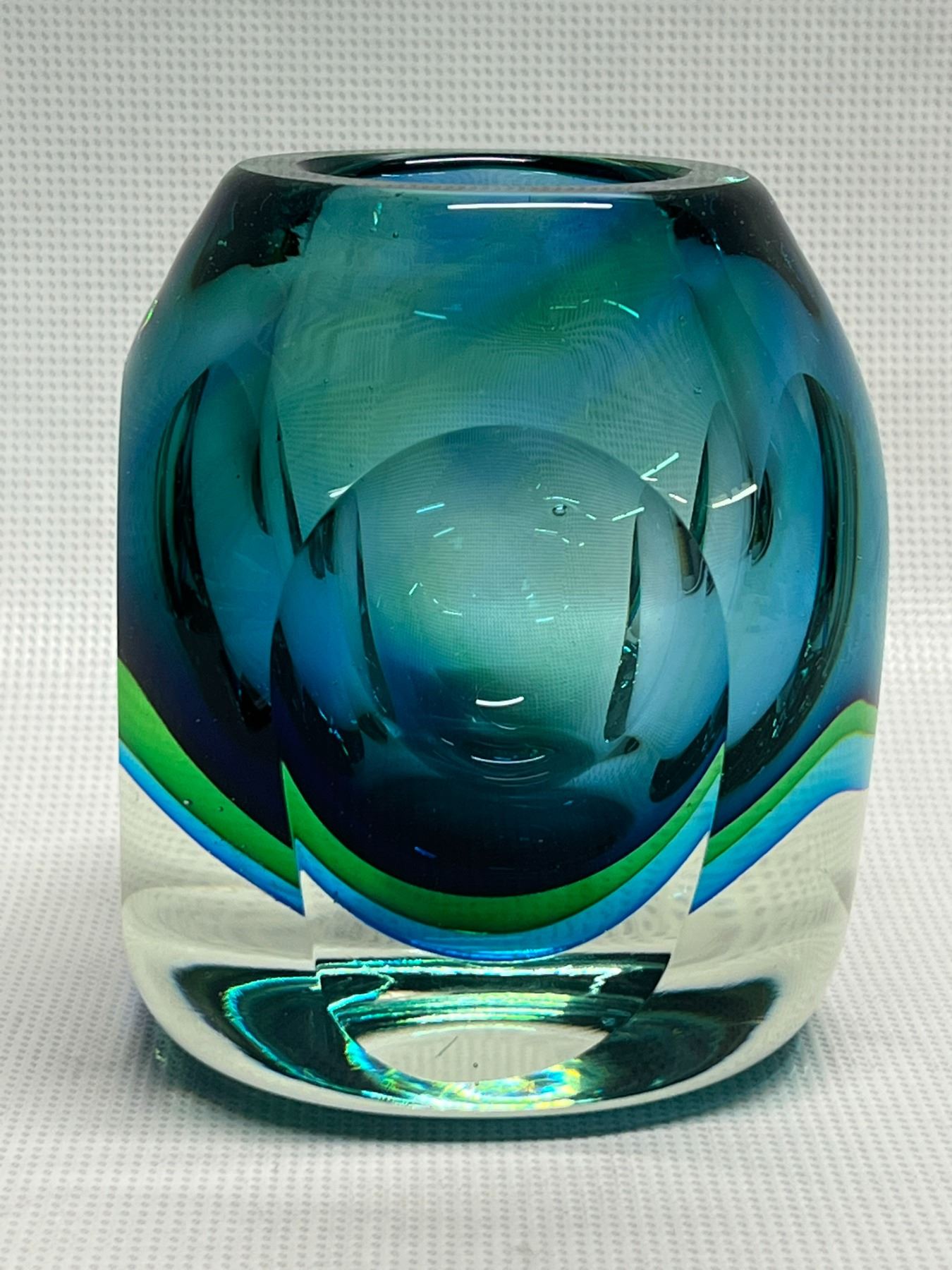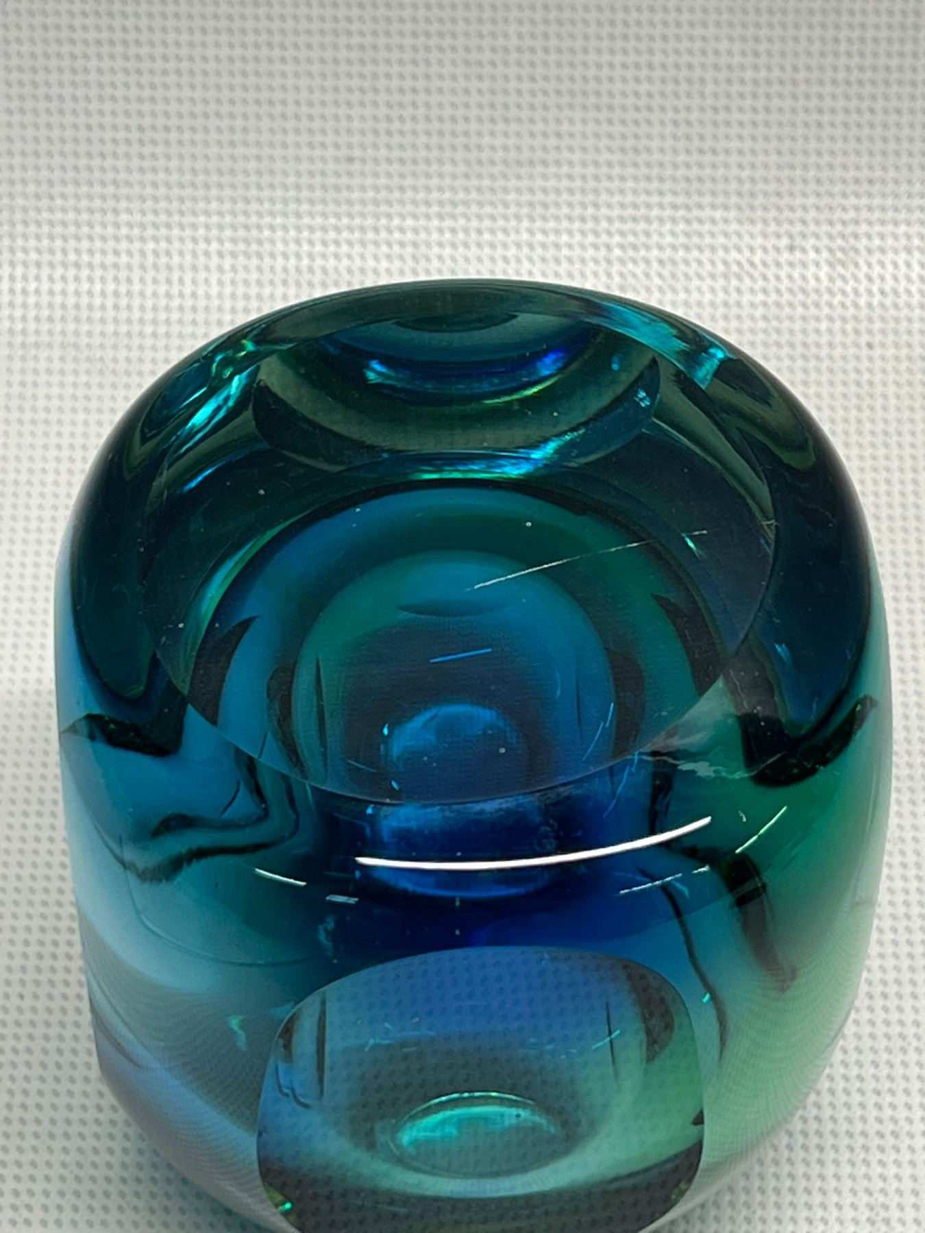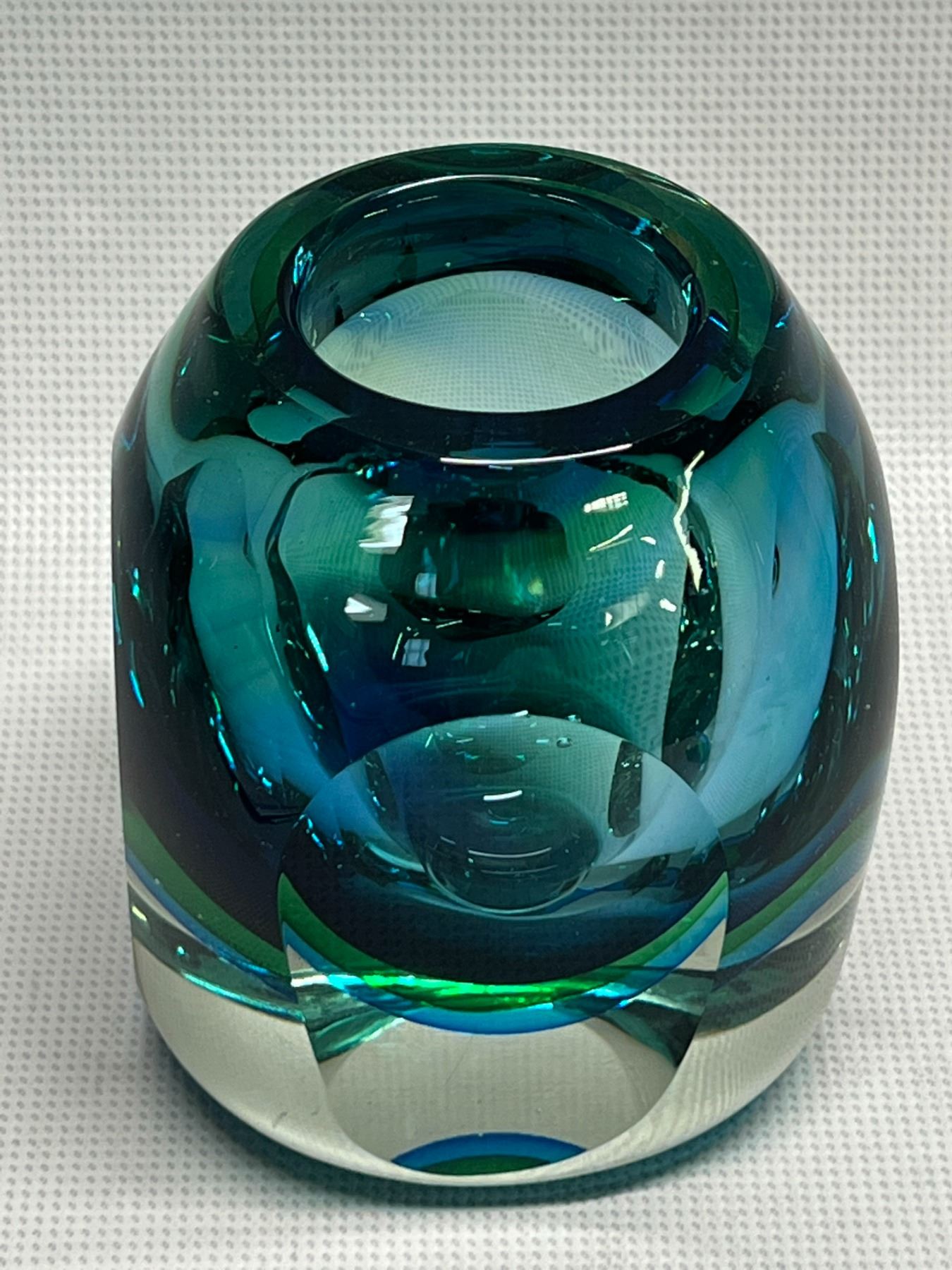Quite heavy given the size. Beautiful at any angle and any light. Not signed (Could be Flavio Poli) . Amazing Murano Summerso Art Glass Vase - Flavio Poli? (Approx: 4.5"T 3.75"W)