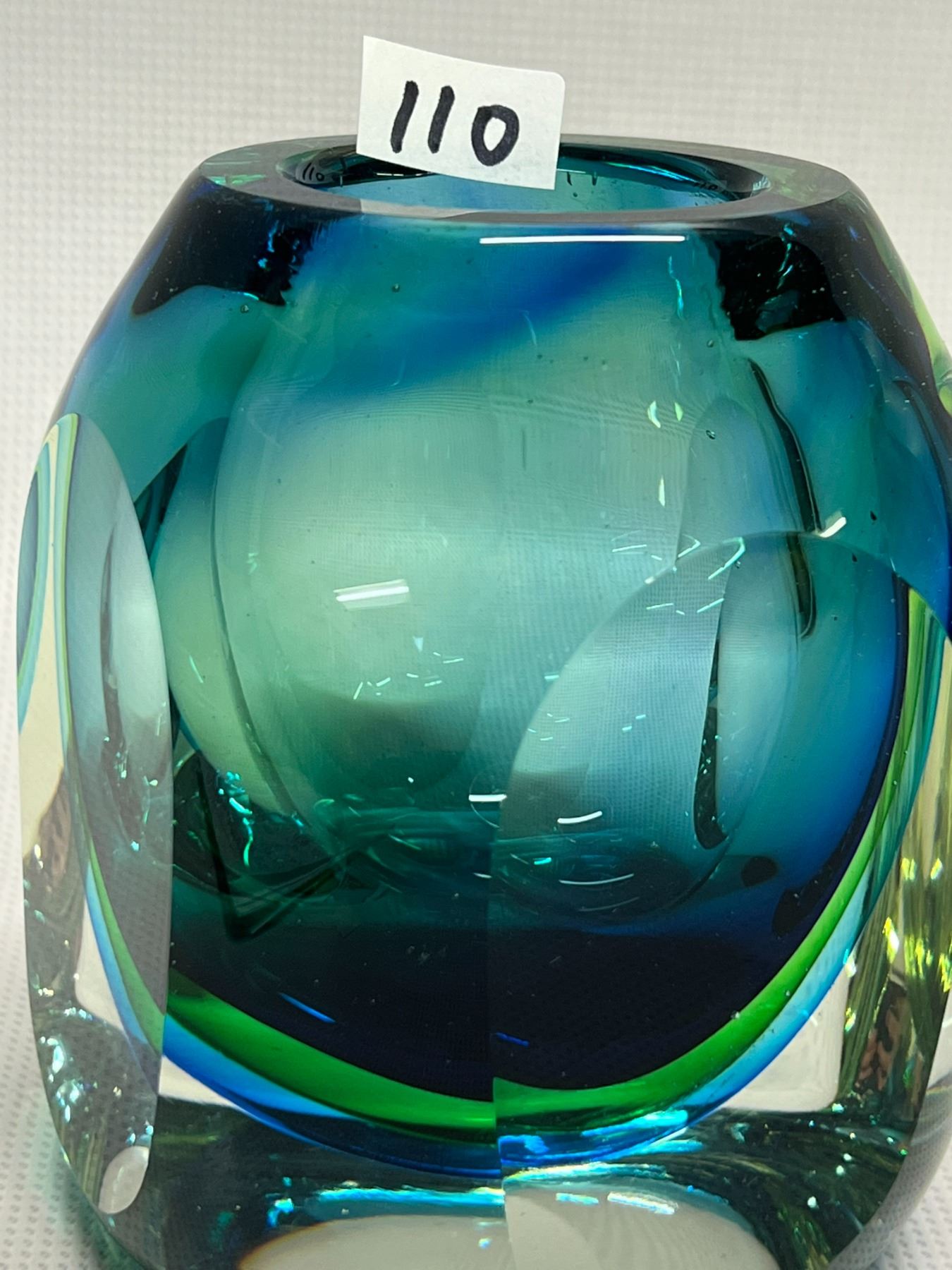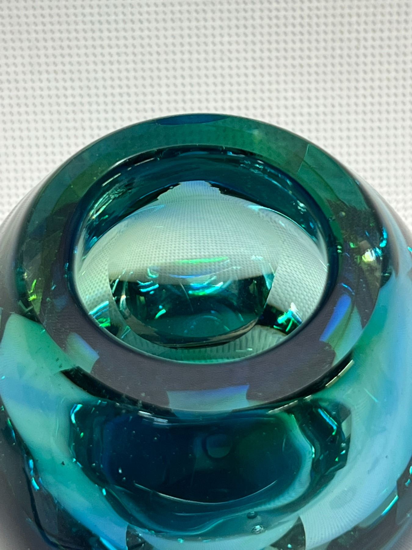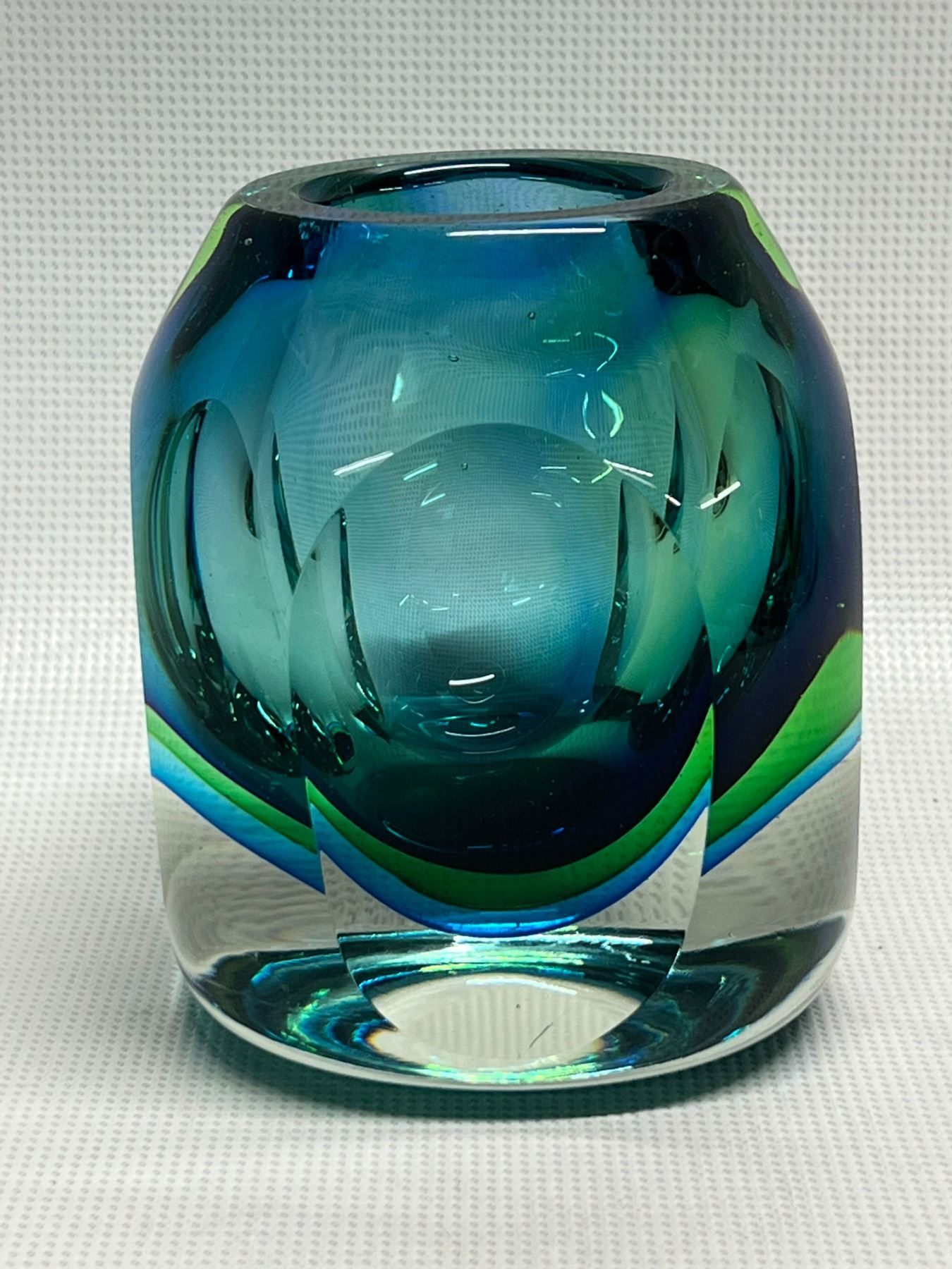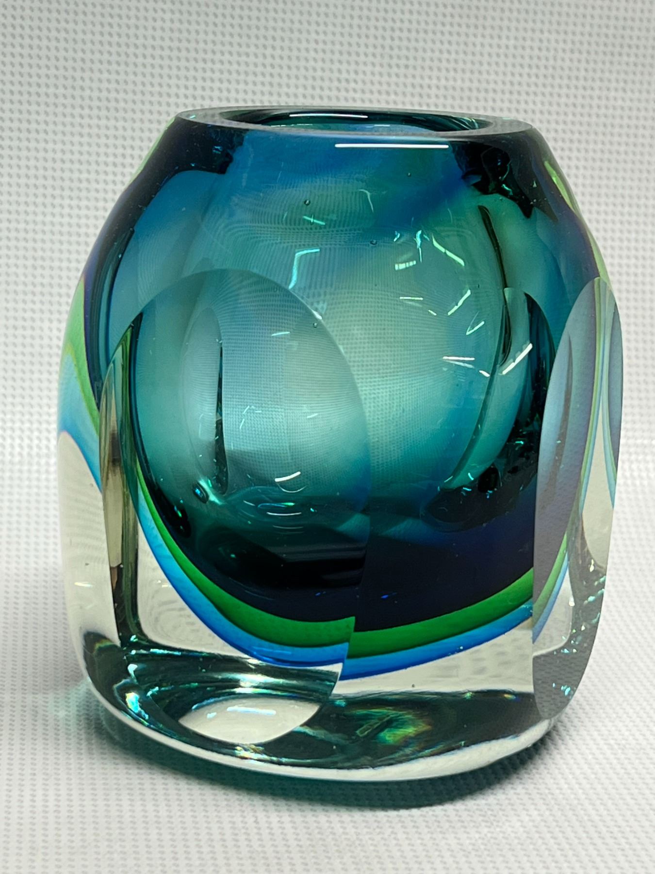 Quite heavy given the size. Beautiful at any angle and any light. Not signed (Could be Flavio Poli) . Amazing Murano Summerso Art Glass Vase - Flavio Poli? (Approx: 4.5"T 3.75"W)