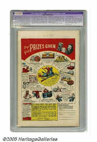 50. Auctioneer offers no opinion as to the validity of a grade assigned by any third-party grading service. Since we cannot examine C.G.A. encapsulated notes or Comics Guaranty Corporation (CGC) encapsulated comics, they are sold "as is" without our grading opinion, and may not be returned for any reason. Auctioneer shall not be liable for any patent or latent defect or controversy pertaining to or arising from any encapsulated collectible. In any such instance, purchaser's remedy, if any, shall be solely against the certification service certifying the collectible.