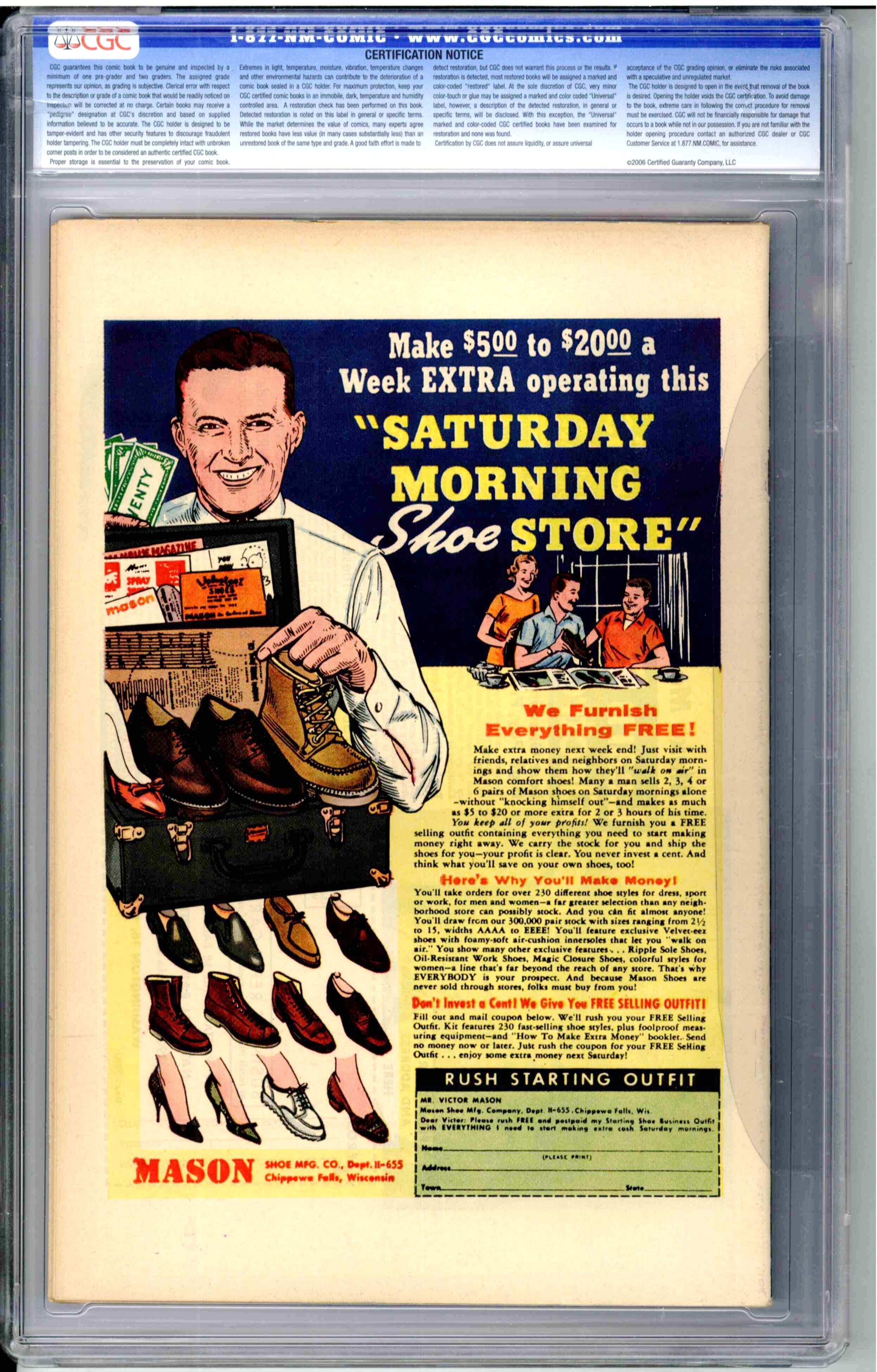 The Auctioneer has reserved the right to reject any and all bids, and to bid at the auction. Auctioneers Auctions are not on approval. Auctioneer does not allow certified material to be returned because of possible differences of opinion with respect to the grade offered by any third party organization, dealer, or service. Absolutely no guarantee of grade is offered for un-certified property sold and subsequently submitted to a third-party grading service. There will be no exceptions to this policy. Under extremely limited circumstances, (e.g. gross cataloging error) a purchaser, who did not bid from the floor, may request Auctioneer to evaluate voiding a sale; such request must be made in writing detailing the alleged gross error, and submission of the lot to the Auctioneer must be pre-approved by the Auctioneer. Bidder must notify Auctioneer in writing of such request within three (3) days of the non-floor bidder receipt of the lot. Any lot that is to be evaluated must be in our offices within 30 days after Auction. Grading does not qualify for this evaluation process nor do such complaints constitute a basis to challenge the authenticity of a lot. AFTER THAT 30-DAY PERIOD, NO LOTS MAY BE RETURNED FOR REASONS OTHER THAN AUTHENTICITY. Lots returned must be housed intact in the original holder. No lots purchased by floor Bidders may be returned (including those Bidders acting as agents for others). Late remittance for purchases may be considered just cause to revoke all return privileges. B: Auctions conducted solely on the Internet have a THREE (3) DAY RETURN POLICY: Lots paid for within seven days of the Auction closing are sold with a three (3) day return privilege. You may return lots under the following conditions: Within three days of receipt of the lot, you must first notify Auctioneer by contacting Client Service by phone (314-680-8599) or e-mail (moundcityauctions@gmail.com), and immediately mail the lot(s) fully insured to the attention of Returns, Mound City Auctions 1081 Teson Rd. Hazelwood, MO. 63042. Lots must be housed intact in their original holder and in their original condition. You are responsible for the insured, safe delivery of any lots. Auctioneer will not be responsible for lots returned in non-registered mail or lots returned without prior authorization per section B. A non-negotiable return fee of 5% of the purchase price ($10 per lot minimum) will be deducted from the refund for each returned lot or billed directly. Postage and handling fees are not refunded. After the three-day period (from receipt), no items may be returned for any reason. Late remittance for purchases revokes all Return-Restock privileges. C: Bidders who have inspected the lots prior to the auction will not be granted any return privileges. D: Comic books sold referencing a third-party grading service are sold “as is” without any express or implied warranty. Certain warranties may be available from the grading services and the Bidder is referred to them for further details: Certified Guaranty Company, LLC. (CGC), P.O. Box 4738, Sarasota, FL 34230. E: Bidders who intend to challenge authenticity or provenance of a lot must notify Auctioneer in writing within thirty (30) days of the Auctions conclusion. In the event Auctioneer cannot deliver the lot or subsequently it is established that the lot lacks title, provenance, authenticity, or other transfer or condition issue is claimed, Auctioneer's liability shall be limited to rescission of sale and refund of purchase price; in no case shall Auctioneer's maximum liability exceed the high bid on that lot, which bid shall be deemed for all purposes the value of the lot. After one year has elapsed, Auctioneer's maximum liability shall be limited to any commissions and fees Auctioneer earned on that lot. F: All comics are guaranteed genuine, but are not guaranteed as to grade, since grading is a matter of opinion, an art and not a science, and therefore the opinion rendered by the Auctioneer or any third party grading service may not agree with the opinion of others (including trained experts), and the same expert may not grade the same item with the same grade at two different times. G: Since we cannot examine encapsulated comics, they are sold “as is”without our grading opinion, and may not be returned for any reason. Auctioneer shall not be liable for any patent or latent defect or controversy pertaining to or arising from any encapsulated collectible. In any such instance, purchaser's remedy, if any, shall be solely against the service certifying the collectible. H: Due to changing grading standards over time, differing interpretations, and to possible mishandling of items by subsequent owners, Auctioneer reserves the right to grade items differently than shown on certificates from any grading service that accompany the items. Auctioneer also reserves the right to grade items differently than the grades shown in the prior catalog should such items be reconsigned to any future auction. I: Although consensus grading is employed by most grading services, it should be noted as aforesaid that grading is not an exact science. In fact, it is entirely possible that if a lot is broken out of a plastic holder and resubmitted to another grading service or even to the same service, the lot could come back with a different grade assigned. J: Certification does not guarantee protection against the normal risks associated with potentially volatile markets. The degree of liquidity for certified collectibles will vary according to general market conditions and the particular lot involved. For some lots there may be no active market at all at certain points in time."
