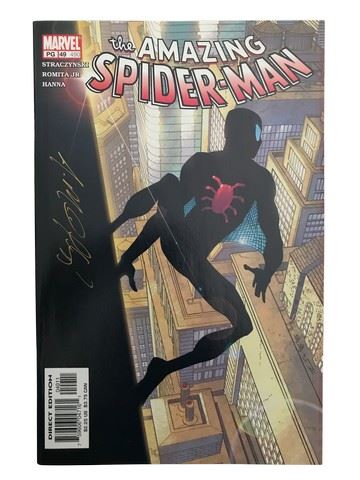 From from J. Michael Straczynski's personal files, this is a signed copy of the Amazing Spider-Man #49 comic from March 2003. J. Michael Straczynski (often referred to as JMS) had an influential and highly discussed run as the writer on The Amazing Spider-Man comic, primarily from 2001 to 2007. His tenure is known for its strong character work and major, often controversial, status quo changes for Peter Parker.