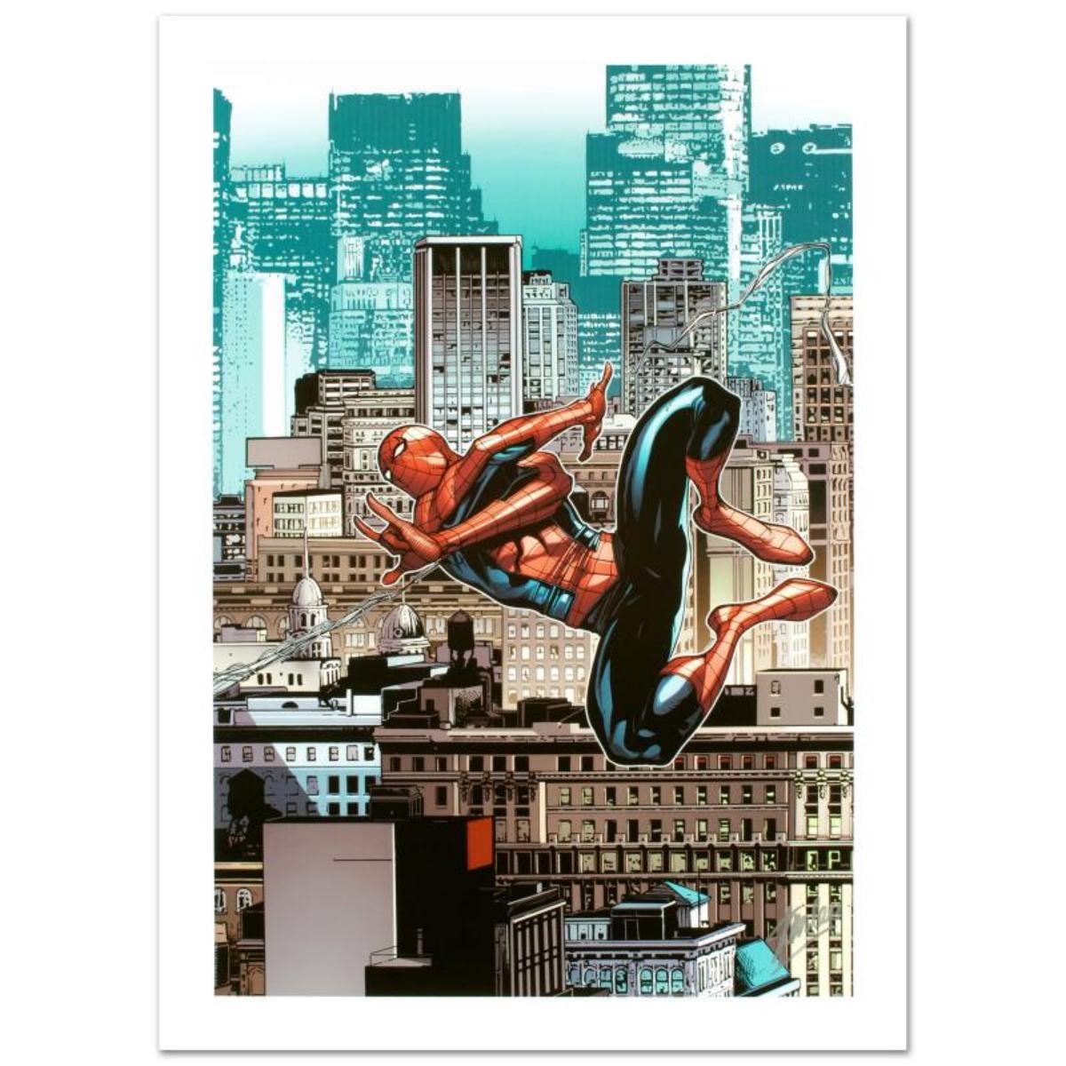 A piece of comic book history, this limited edition, from original art by Stefano Caselli, depicts the classic Marvel character Spider-Man. Stefano Caselli is an Italian comic book artist best known for his work on the Marvel Comics title Avengers: The Initiative, the mini-series Civil War: Young Avengers/Runaways and Secret Warriors. He is one of the pencillers of The Amazing Spider-Man, starting with issue #651 of February 2011. "Amazing Spider-Man #666" is a limited edition giclee on canvas by Stefano Caselli presented by Marvel Comics, numbered and hand signed by the Great Stan Lee (1922-2018)! Includes Certificate of Authenticity! Measures approx. 18" x 27" (image). Reference #: 186933.