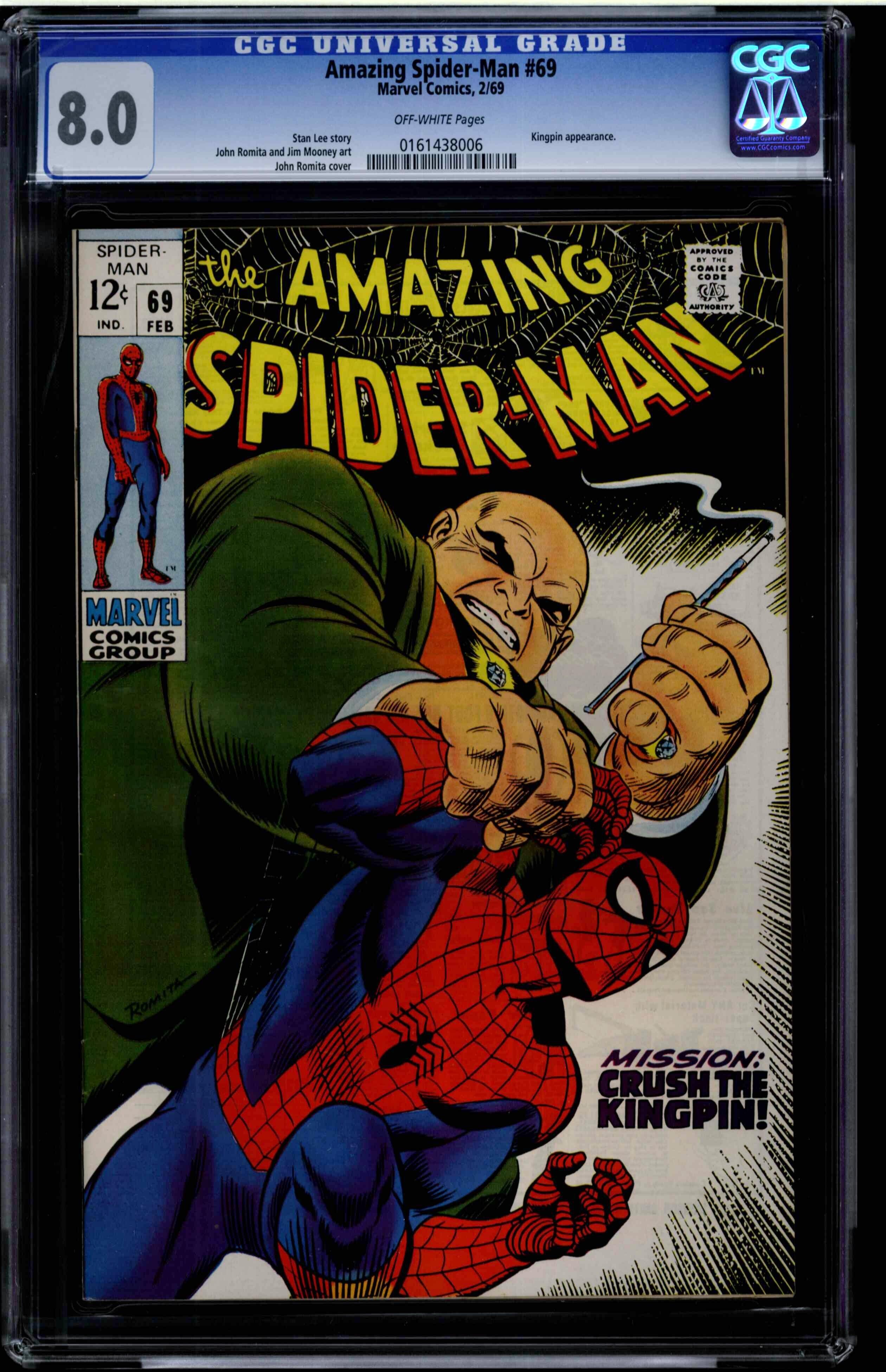 2/69 Marvel Comics Universal 8.0 OFF-WHITE 8.0 Stan Lee story John Romita and Jim Mooney art John Romita cover Kingpin appearance. CGC census lists 28 copies at 8.0 with 205 higher.