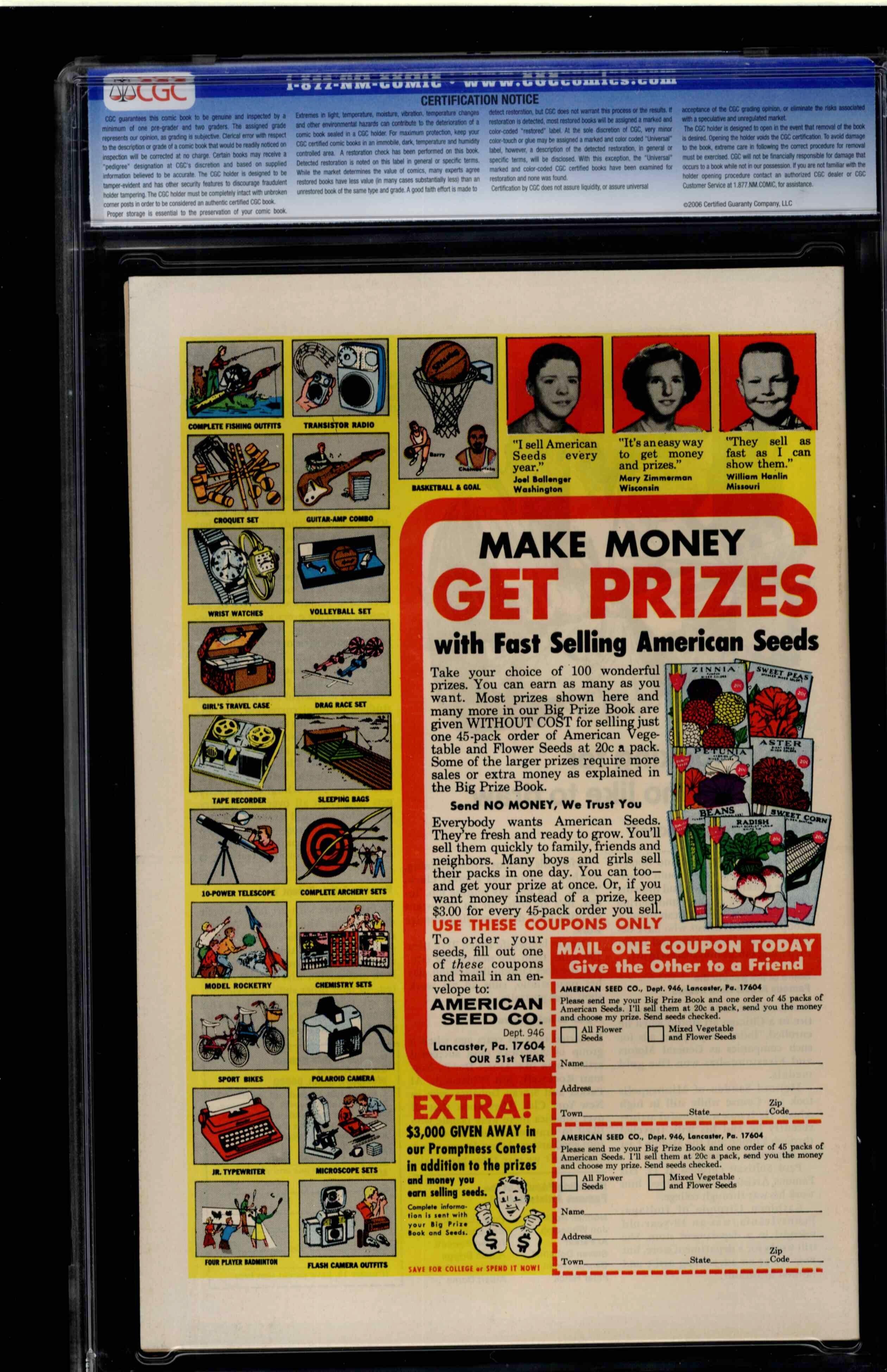 The Auctioneer has reserved the right to reject any and all bids, and to bid at the auction. Auctioneers Auctions are not on approval. Auctioneer does not allow certified material to be returned because of possible differences of opinion with respect to the grade offered by any third party organization, dealer, or service. Absolutely no guarantee of grade is offered for un-certified property sold and subsequently submitted to a third-party grading service. There will be no exceptions to this policy. Under extremely limited circumstances, (e.g. gross cataloging error) a purchaser, who did not bid from the floor, may request Auctioneer to evaluate voiding a sale; such request must be made in writing detailing the alleged gross error, and submission of the lot to the Auctioneer must be pre-approved by the Auctioneer. Bidder must notify Auctioneer in writing of such request within three (3) days of the non-floor bidder receipt of the lot. Any lot that is to be evaluated must be in our offices within 30 days after Auction. Grading does not qualify for this evaluation process nor do such complaints constitute a basis to challenge the authenticity of a lot. AFTER THAT 30-DAY PERIOD, NO LOTS MAY BE RETURNED FOR REASONS OTHER THAN AUTHENTICITY. Lots returned must be housed intact in the original holder. No lots purchased by floor Bidders may be returned (including those Bidders acting as agents for others). Late remittance for purchases may be considered just cause to revoke all return privileges. B: Auctions conducted solely on the Internet have a THREE (3) DAY RETURN POLICY: Lots paid for within seven days of the Auction closing are sold with a three (3) day return privilege. You may return lots under the following conditions: Within three days of receipt of the lot, you must first notify Auctioneer by contacting Client Service by phone (314-680-8599) or e-mail (moundcityauctions@gmail.com), and immediately mail the lot(s) fully insured to the attention of Returns, Mound City Auctions 1081 Teson Rd. Hazelwood, MO. 63042. Lots must be housed intact in their original holder and in their original condition. You are responsible for the insured, safe delivery of any lots. Auctioneer will not be responsible for lots returned in non-registered mail or lots returned without prior authorization per section B. A non-negotiable return fee of 5% of the purchase price ($10 per lot minimum) will be deducted from the refund for each returned lot or billed directly. Postage and handling fees are not refunded. After the three-day period (from receipt), no items may be returned for any reason. Late remittance for purchases revokes all Return-Restock privileges. C: Bidders who have inspected the lots prior to the auction will not be granted any return privileges. D: Comic books sold referencing a third-party grading service are sold “as is” without any express or implied warranty. Certain warranties may be available from the grading services and the Bidder is referred to them for further details: Certified Guaranty Company, LLC. (CGC), P.O. Box 4738, Sarasota, FL 34230. E: Bidders who intend to challenge authenticity or provenance of a lot must notify Auctioneer in writing within thirty (30) days of the Auctions conclusion. In the event Auctioneer cannot deliver the lot or subsequently it is established that the lot lacks title, provenance, authenticity, or other transfer or condition issue is claimed, Auctioneer's liability shall be limited to rescission of sale and refund of purchase price; in no case shall Auctioneer's maximum liability exceed the high bid on that lot, which bid shall be deemed for all purposes the value of the lot. After one year has elapsed, Auctioneer's maximum liability shall be limited to any commissions and fees Auctioneer earned on that lot. F: All comics are guaranteed genuine, but are not guaranteed as to grade, since grading is a matter of opinion, an art and not a science, and therefore the opinion rendered by the Auctioneer or any third party grading service may not agree with the opinion of others (including trained experts), and the same expert may not grade the same item with the same grade at two different times. G: Since we cannot examine encapsulated comics, they are sold “as is”without our grading opinion, and may not be returned for any reason. Auctioneer shall not be liable for any patent or latent defect or controversy pertaining to or arising from any encapsulated collectible. In any such instance, purchaser's remedy, if any, shall be solely against the service certifying the collectible. H: Due to changing grading standards over time, differing interpretations, and to possible mishandling of items by subsequent owners, Auctioneer reserves the right to grade items differently than shown on certificates from any grading service that accompany the items. Auctioneer also reserves the right to grade items differently than the grades shown in the prior catalog should such items be reconsigned to any future auction. I: Although consensus grading is employed by most grading services, it should be noted as aforesaid that grading is not an exact science. In fact, it is entirely possible that if a lot is broken out of a plastic holder and resubmitted to another grading service or even to the same service, the lot could come back with a different grade assigned. J: Certification does not guarantee protection against the normal risks associated with potentially volatile markets. The degree of liquidity for certified collectibles will vary according to general market conditions and the particular lot involved. For some lots there may be no active market at all at certain points in time."