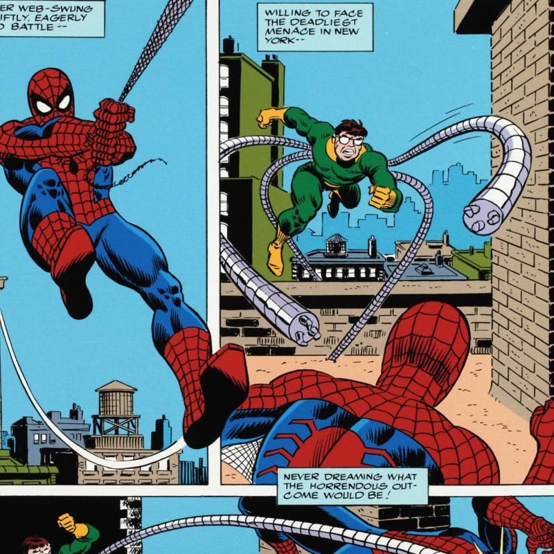 A piece of comic book history, this limited edition, from original art by John Romita Sr., depicts Spider-Man and Dr. Octopus. John Romita becan his career in comics in the 1950's doing freelance work for various organizations. Originally known primarily for his love comic penciling, he soon left this type of comic for a more heroic venture. Romita is known for his work on Dare Devil, Spider-Man, and Captain America. "Amazing Spider-Man #90" is a limited edition numbered giclee on stretched canvas by John Romita Sr. presented by Marvel Comics. This piece comes gallery wrapped. Includes Certificate of Authenticity! Measure approx. 18" x 27" (image); 1.5" (depth).