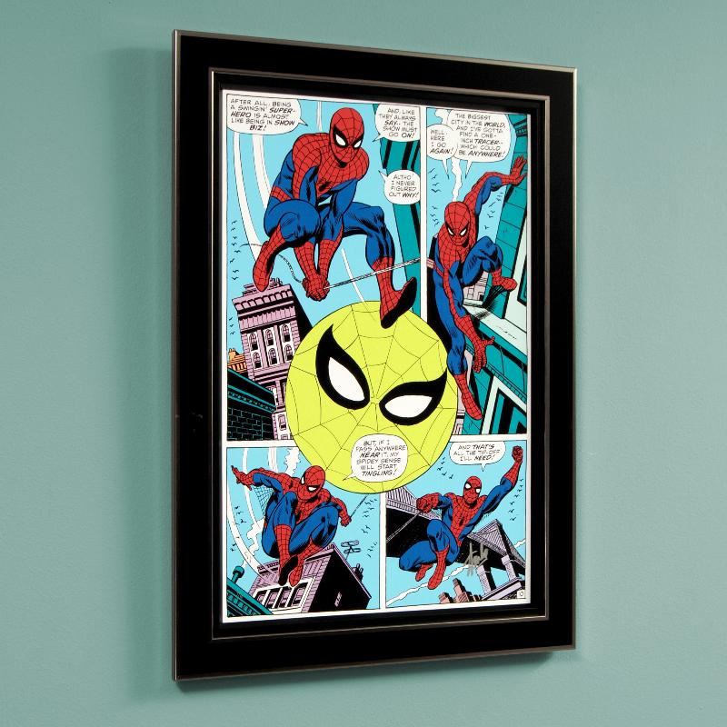 A piece of comic book history, this limited edition, from original art by Gil Kane, depicts a classic comic strip starring Spider-Man. Eli Katz (1926-2000) who worked under the name Gil Kane and in one instance Scott Edward, was a comic book artist whose career spanned the 1940s to 1990s and every major comics company and character. Kane co-created the modern-day versions of the superheroes Green Lantern and the Atom for DC Comics, and co-created Iron Fist with Roy Thomas for Marvel Comics. He was also involved in such major story lines as that of The Amazing Spider-Man. "Amazing Spider-Man #90" is an extremely limited edition giclee on canvas by Gil Kane presented by Marvel Comics, hand signed by the Great Stan Lee (1922-2018) and numbered out of only 4! This piece comes custom framed and ready to hang. Includes Certificate of Authenticity! Measures approx. 29" x 40" (with frame), 22" x 33" (image).