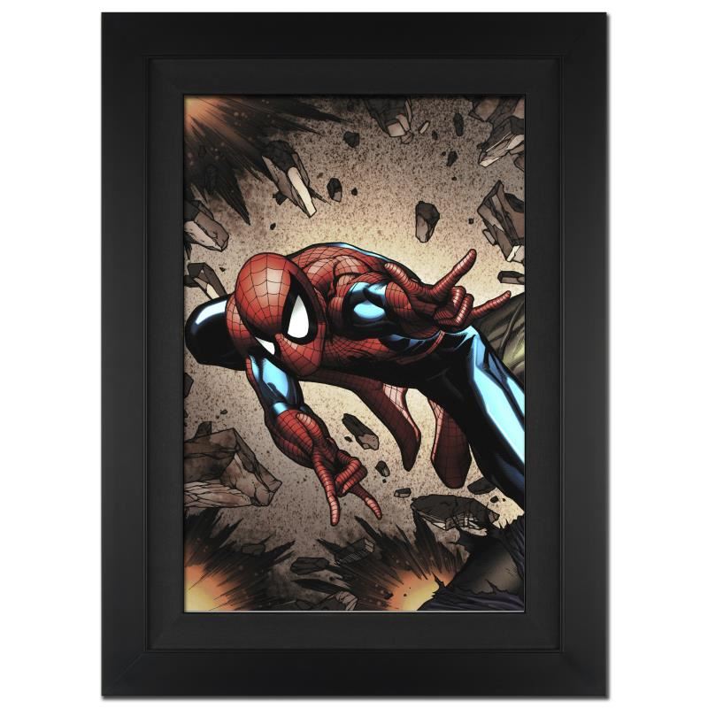 A piece of comic book history, this limited edition, from original art by Steve McNiven, depicts the classic character Spider-Man. Known for being the penciller of the Marvel mini-series "Civil War," Steve McNiven has also contributed art to Spider-Man and Wolverine, among others. "Amazing Spider-Man Annual #38" is an extremely limited edition giclee on canvas by Steve McNiven presented by Marvel Comics, hand signed by the Great Stan Lee (1922-2018) and numbered out of only 10! This piece is custom framed and ready to hang. Includes Certificate of Authenticity! Measure approx. 25" x 34" (with frame), 18" x 27" (image).
