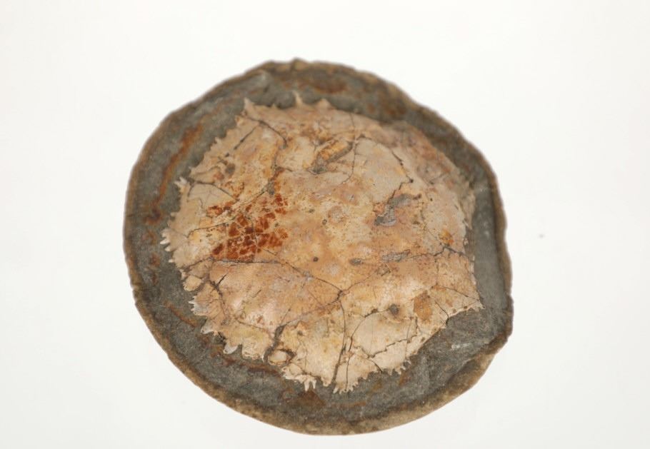 Featured in this lot is this amazing detailed Trichopeltarion Greggi fossil from the Cenozoic era commonly found in the Southern New Zealand area. These fossils are found in the late Miocene rocks of New Zealand and are from the Cenozoic era, that includes the Neogene period and Pilocene periods which were about 2.5-5.5 million years ago. The rock is split showing the positive side of the fossil. The fossil shows some spiny outcroppings through the top half and a smoother bottom half with colors of orange, brown and beige. The fossil shows good condition with no painting to the fossil and good shape. It measures 3 7/8" L x 4 1/8" W.