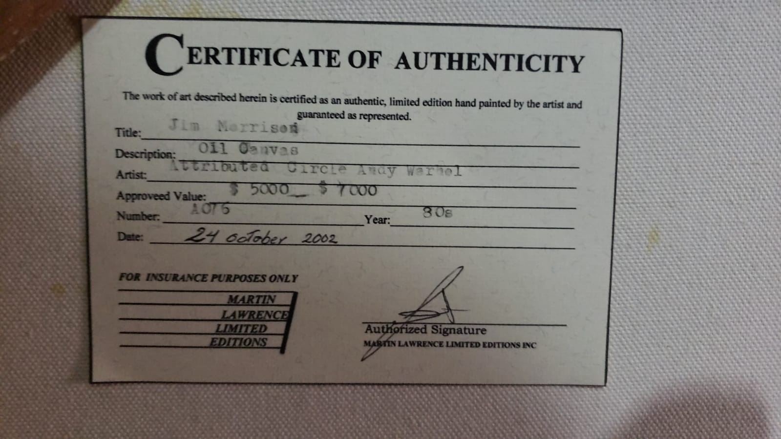 * Antique oil canvas painting ( Jim Morrison , The Doors ) Executed by Circle Andy Warhol. ** Measures : 31.5 x 23.5 // 37 x 29 Inches ** Shipping to Worldwide.*