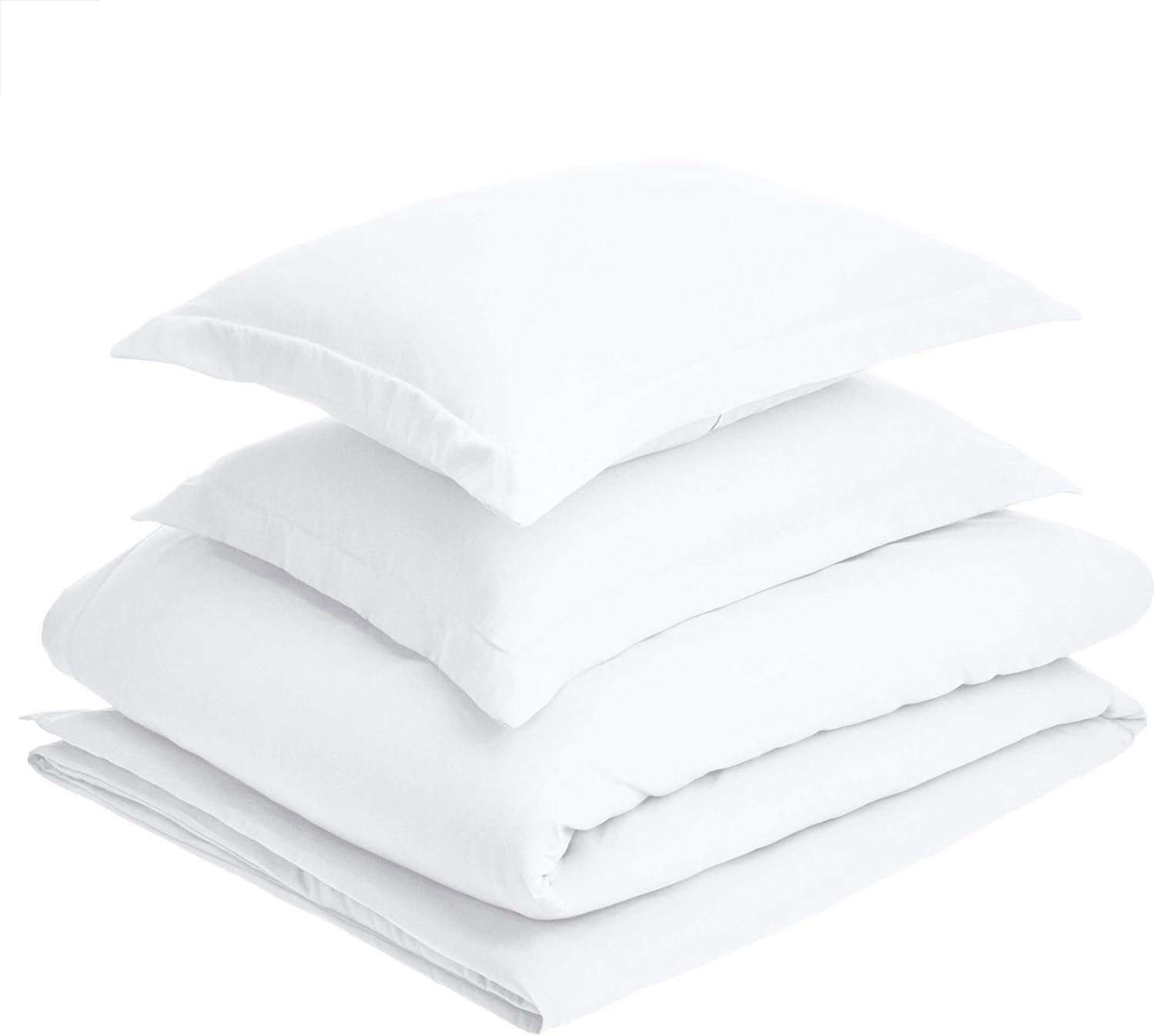 Amazon Basics Lightweight Microfiber 3-Piece Duvet Cover Set with Zipper Closure, Full/Queen, Pristine Snow, Bright White, Solid Retail $82
