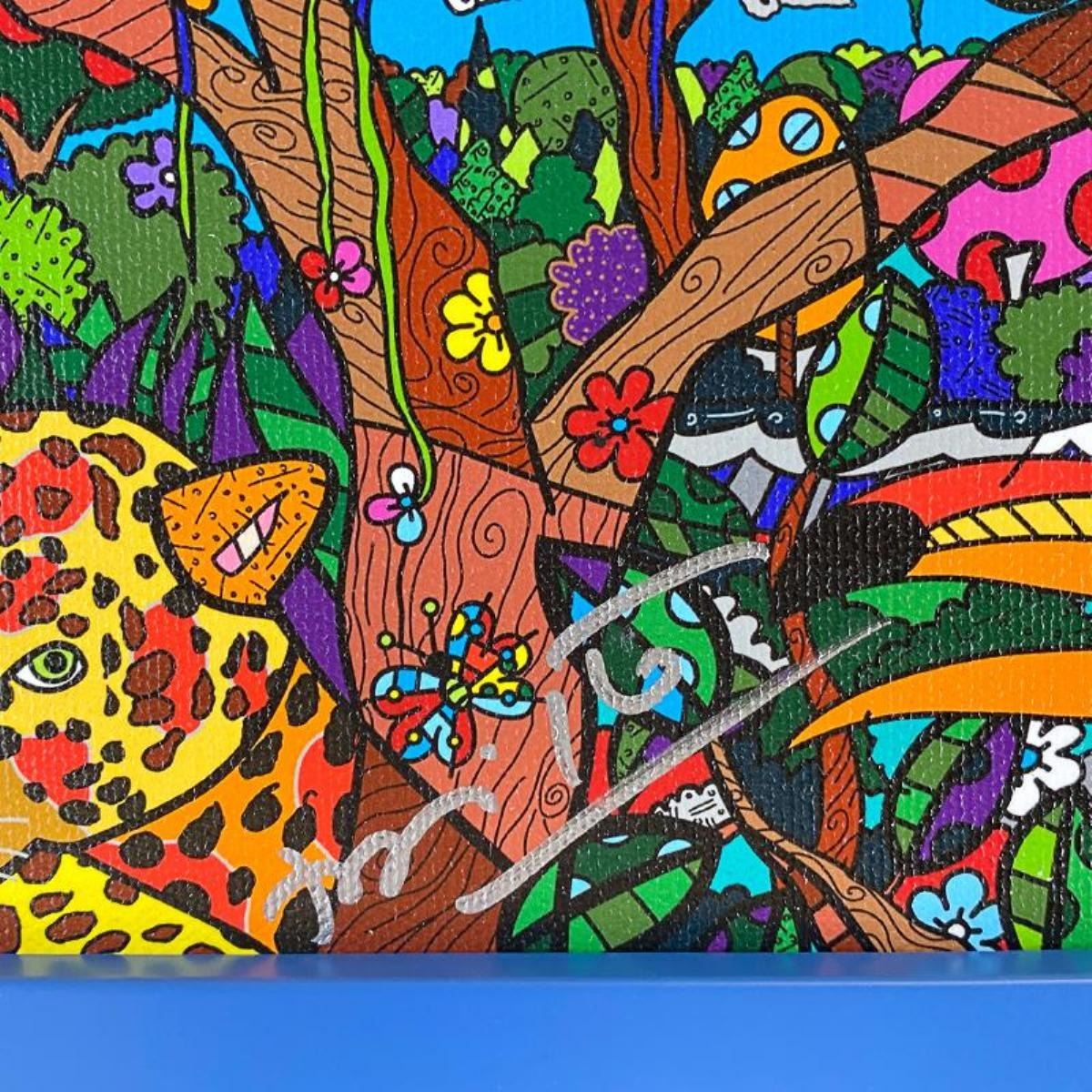 "Amazon Mini" is a framed open edition giclee on canvas by Romero Britto. The piece comes hand signed by the artist and is authenticated en verso with the official Britto stamp. Measures approximately: 11" x 13.5" (framed), 4.5" x 7" (image).
