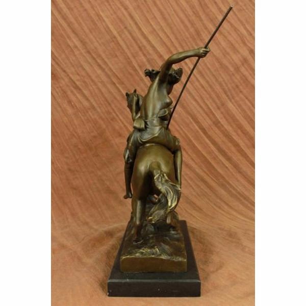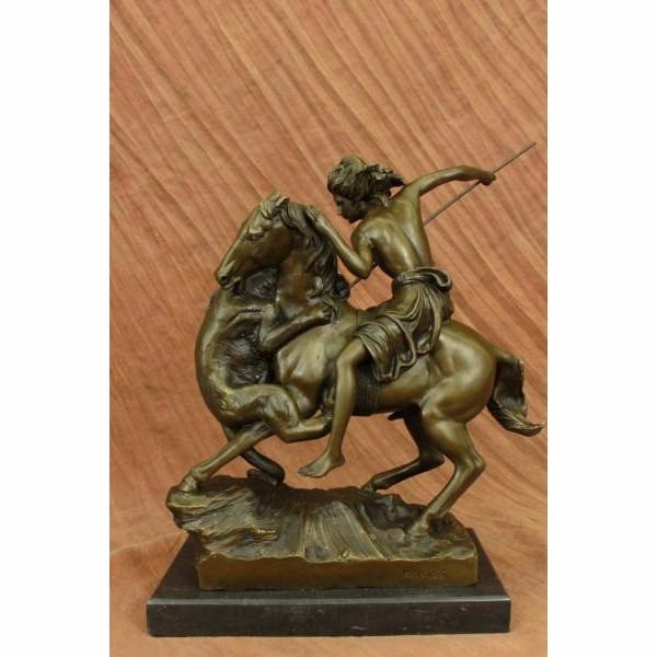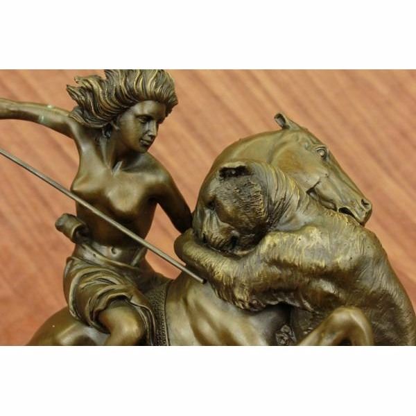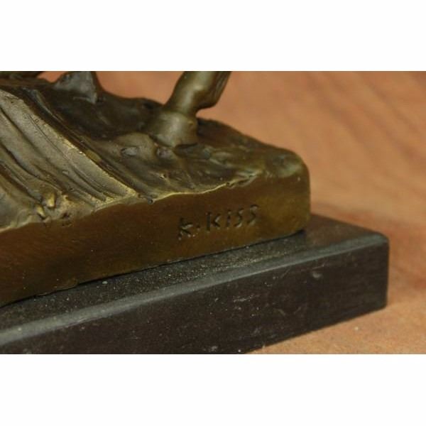 The Mounted Amazon Attacked by a Panther was the work of German sculptor Auguste Kiss. Caught in the midst of the attack, the figures convey the violence and emotional tension of the moment. The Amazon was installed in 1837 at the steps of the newly built National Museum in Berlin, standing alone for several years until Albert Wolff completed a companion piece, The Lion Fighter. The Fairmount Park Art Association (now the Association for Public Art) acquired the plaster casts for both works in 1889, but the Amazon cast was in such poor condition that it could not be shipped to the United States. Bronze Dimensions with Marble Base:Height 1 5 " x Width 21" Marble Dimensions: 11" 5.5" Height without base: 14" Weight :23 LBS Inventory : 81STE31414518