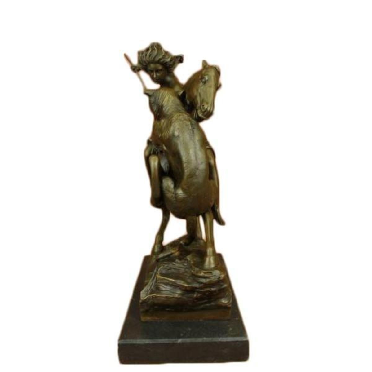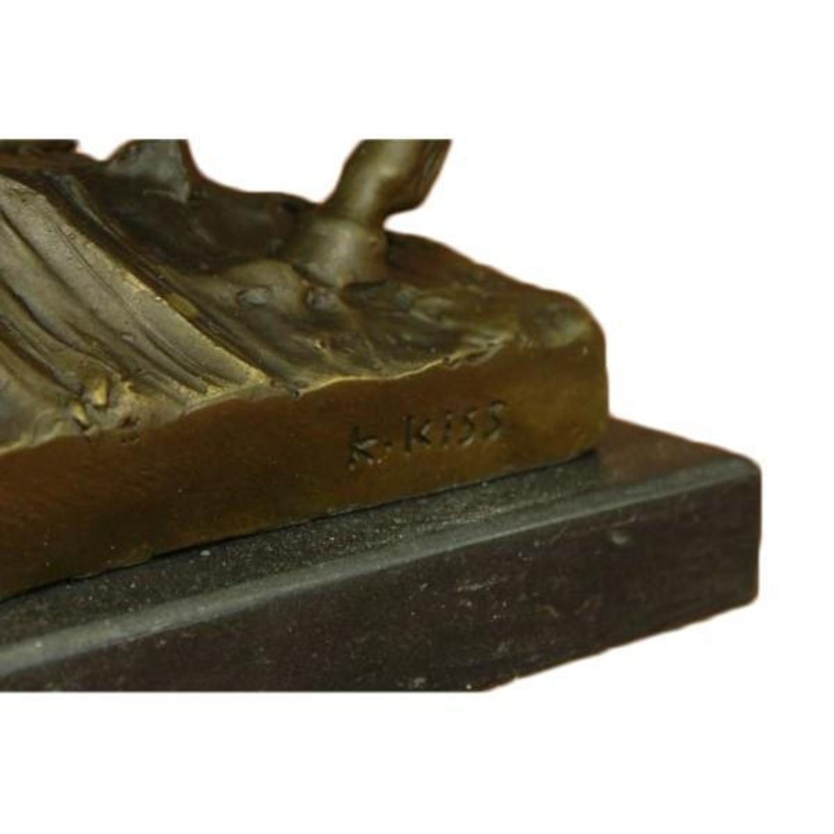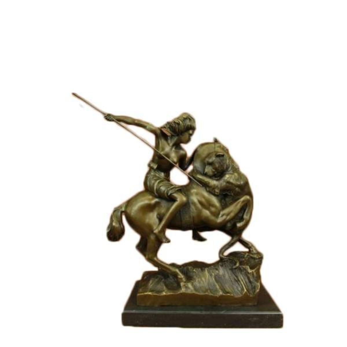 After August Karl Edouard Kiss ( German, 1802 - 1865 ) Amazon on Horseback Attacked  by a Tiger without Spear. BUYER BEWARE: The spear seems to have been lost for this particular bronze. Lost wax casting method bronze, with brown patina, mounted on a marble base. 15" X 21". 23lbs.