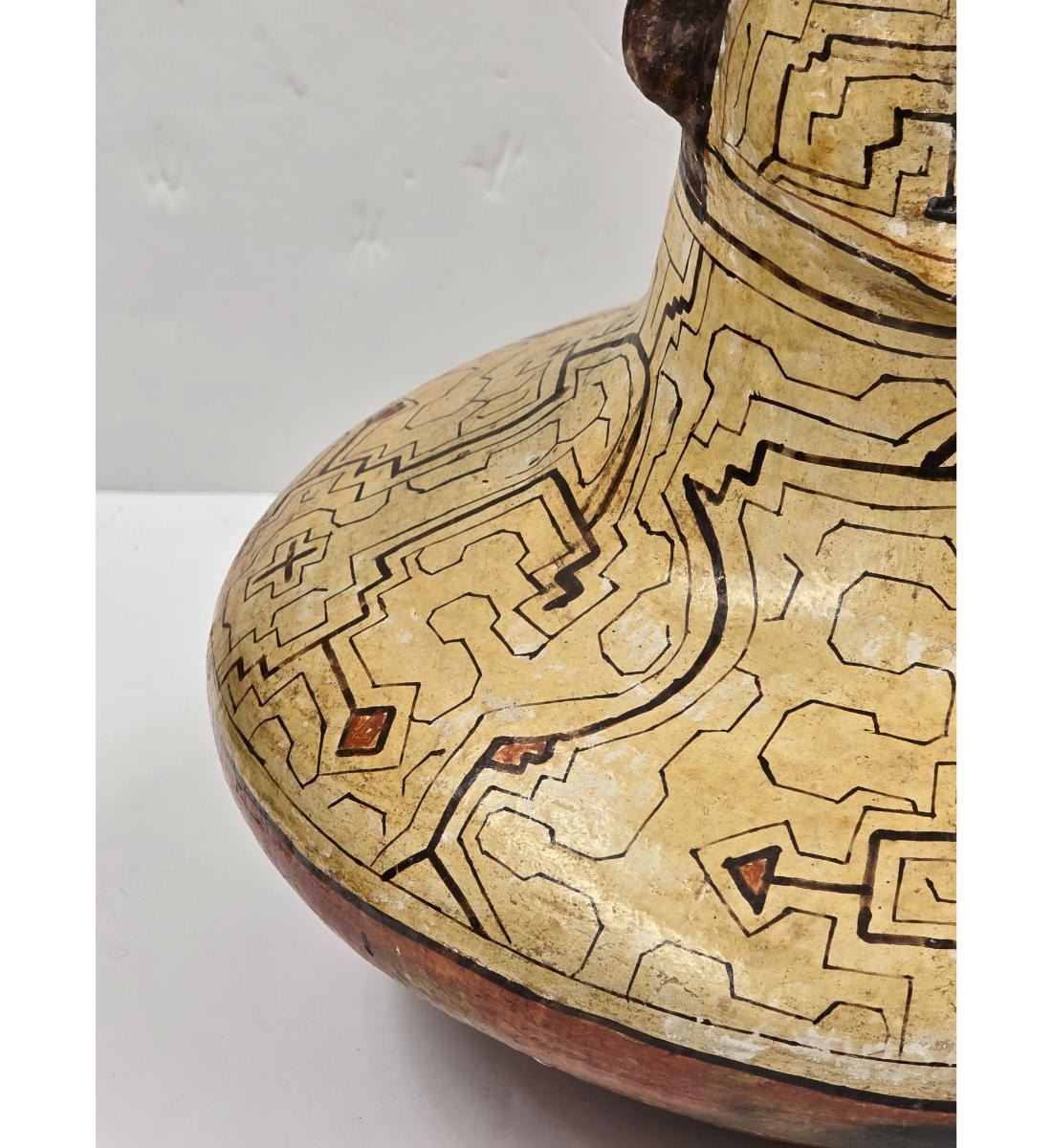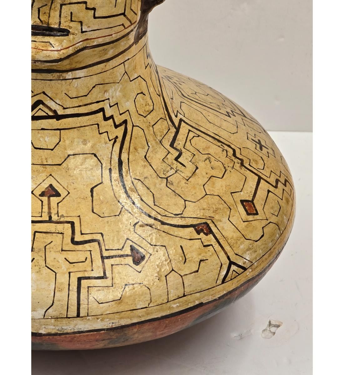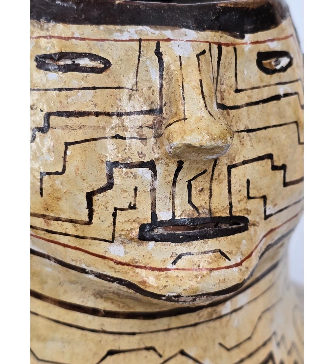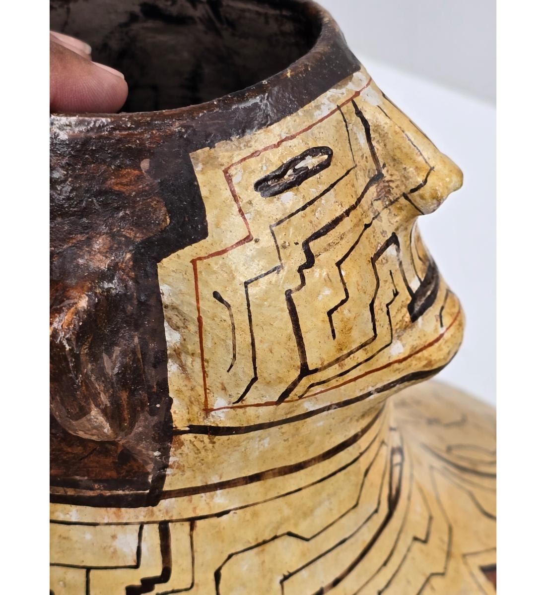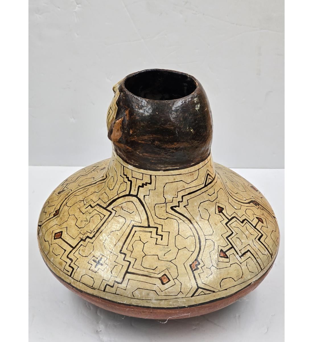 A Fine And Older, Hand Thrown Polychromed Painted, Ceramic Anthropomorphic Shapibo From Amazonian Rain Forest. Measure 10.5" x 11.5". Provenance: One Person Private Estate Central Florida.