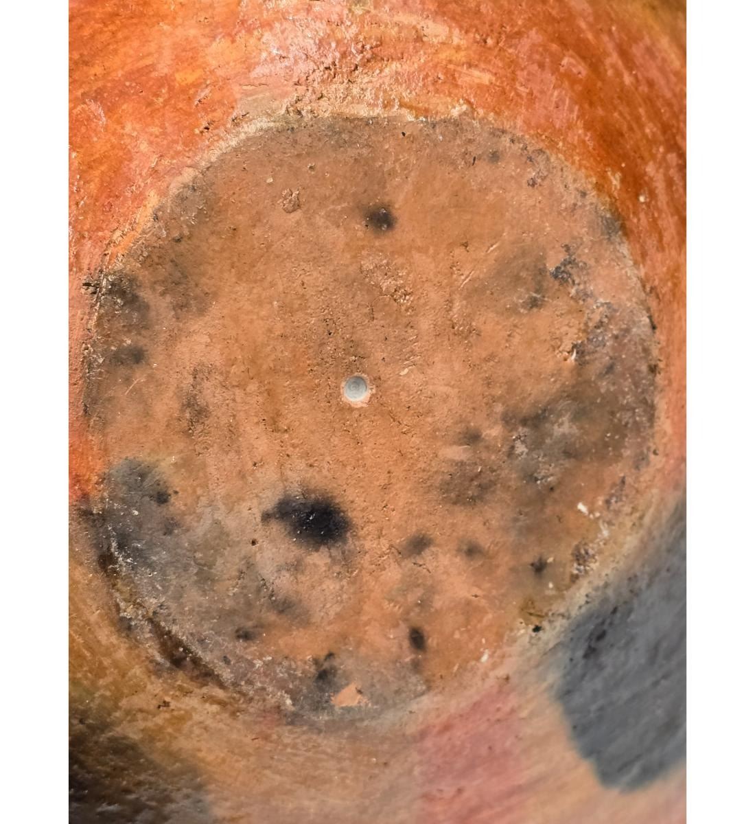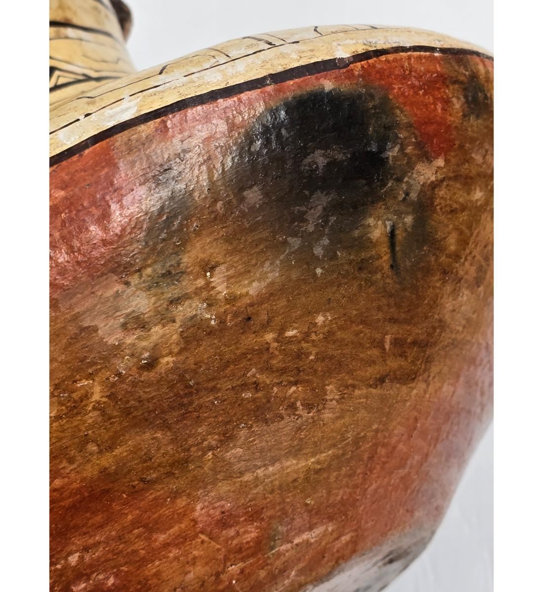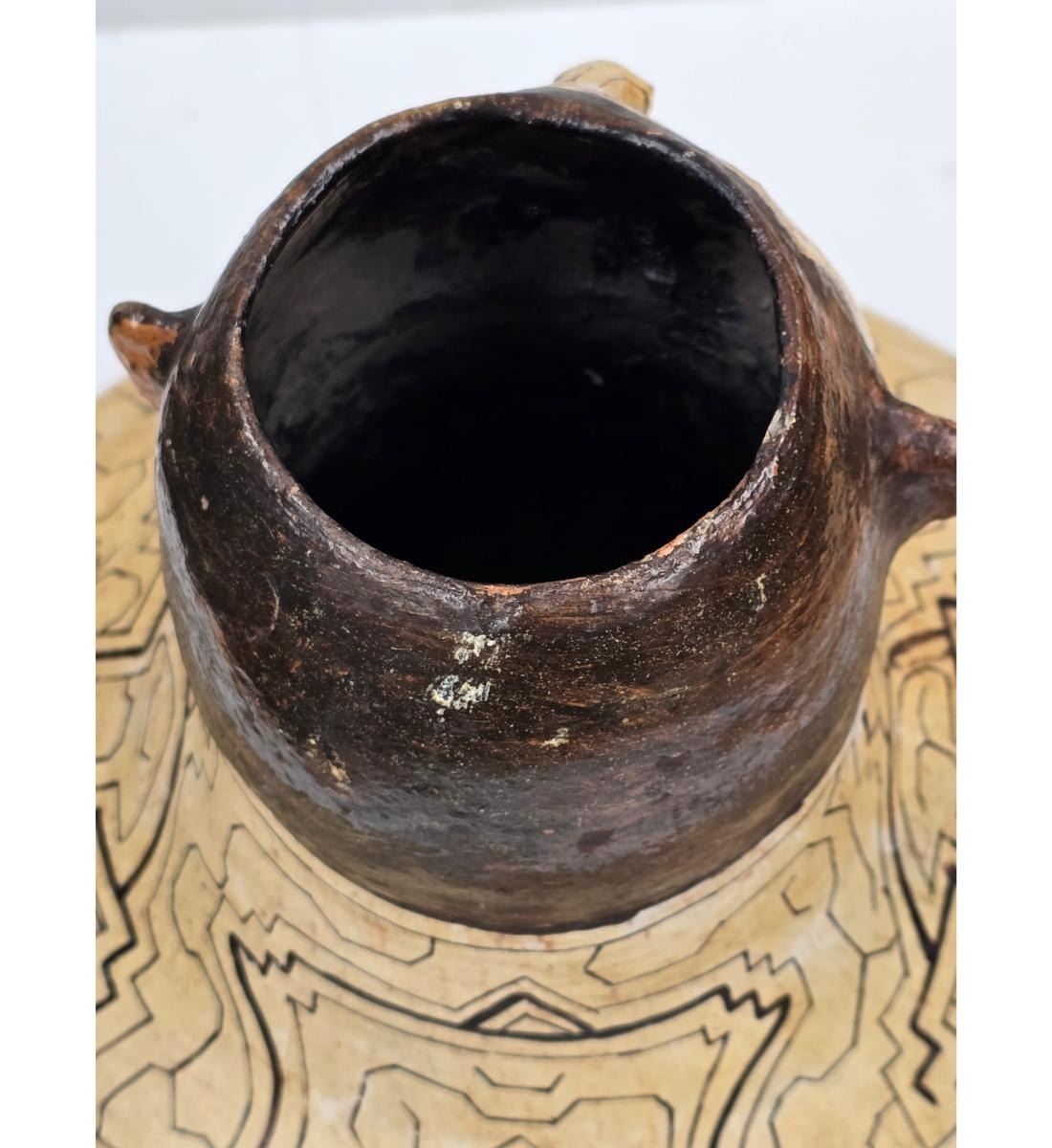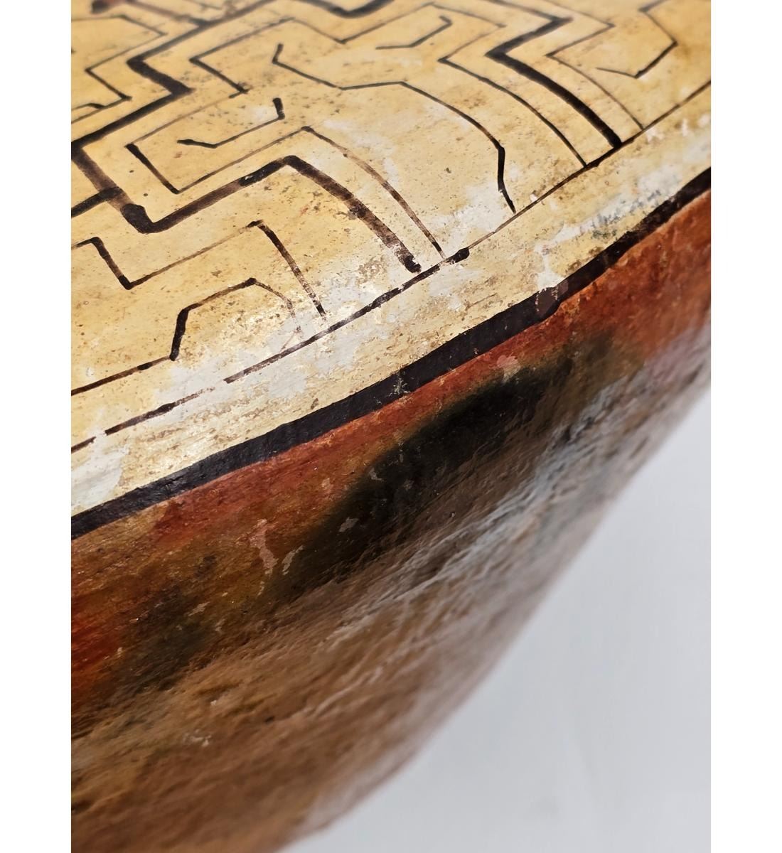 A Fine And Older, Hand Thrown Polychromed Painted, Ceramic Anthropomorphic Shapibo From Amazonian Rain Forest. Measure 10.5" x 11.5". Provenance: One Person Private Estate Central Florida.