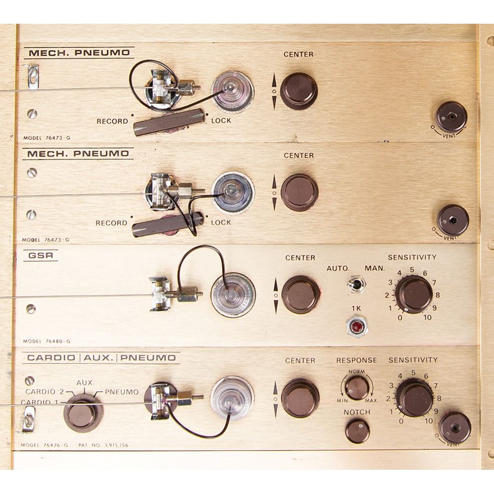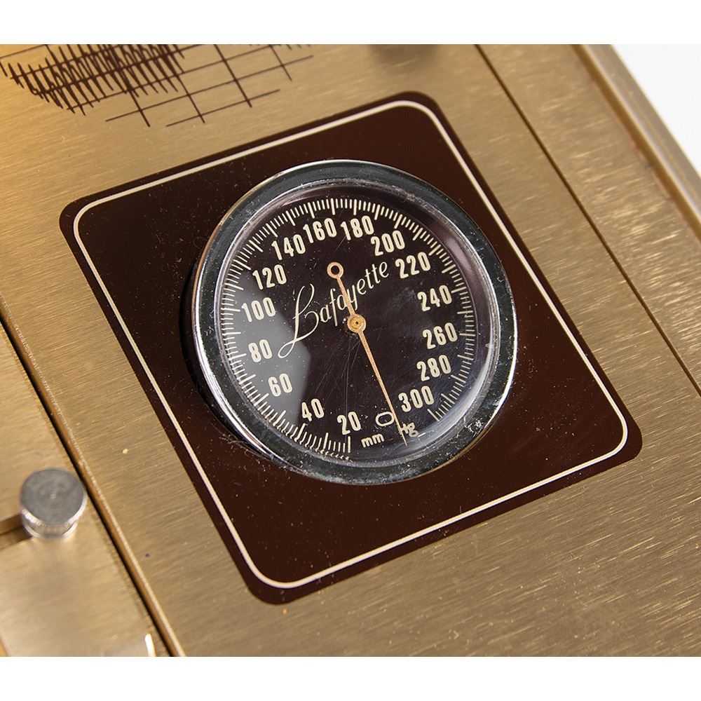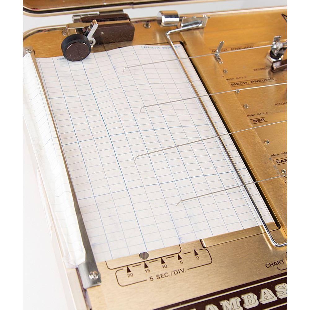 Interesting portable 'Ambassador' model portable polygraph machine built by the Lafayette Instrument Company, housed in its original 21Àù x 13.5Àù x 6.5Àù metal suitcase. The lid opens to reveal the five-channel, all mechanical polygraph with two pneumographs, one galvanometer, one cardiograph, and one stimulus marker. Untested and in fine cosmetic condition, with some wear to the case. An interesting visual piece that evokes the spy games (tradecraft), espionage tactics of the Cold War, and law enforcement 'lie detection.'