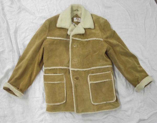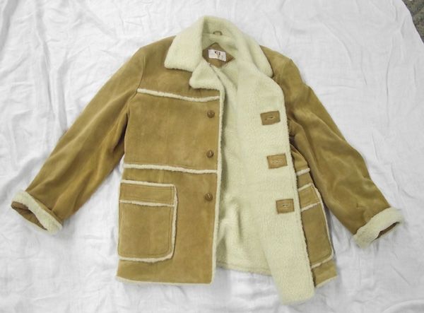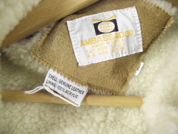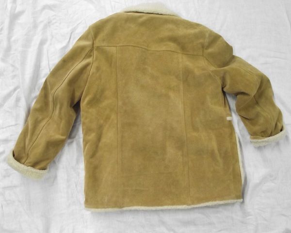 Suede Leather Jacket with faux acrylic sheepskin lining. This really nice jacket is a size S/M. Inside lable reads ''Ambassador'' made in Korea.